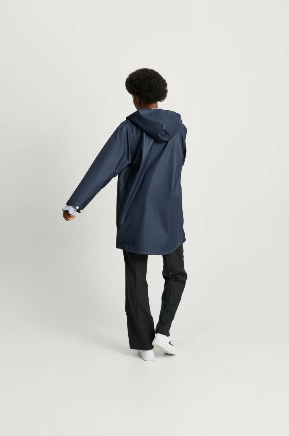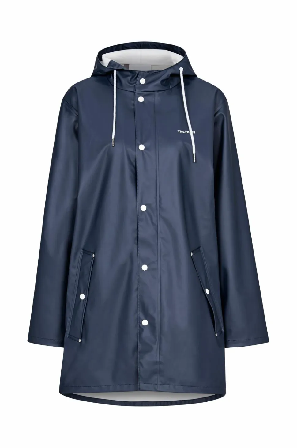 Regnjakke Wings Classic fra Tretorn er en ægte klassiker i unisexmodel. Model er lidt længere med hvide detaljer. Den faste hætte har løbegang med snøre foran. Hvide plasttrykknapper foran og i ærmekanten. To forlommer med flap, der holder vand ude. Jakken, som er helt vandtæt, er fremstillet af PVC-fri PU med varmesvejsede sømme. Længde 90 cm i str. M.
