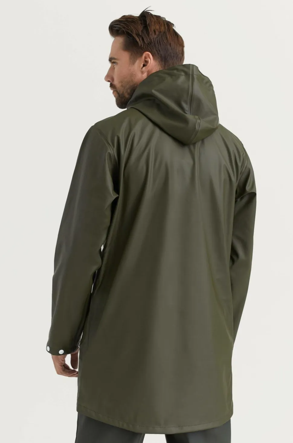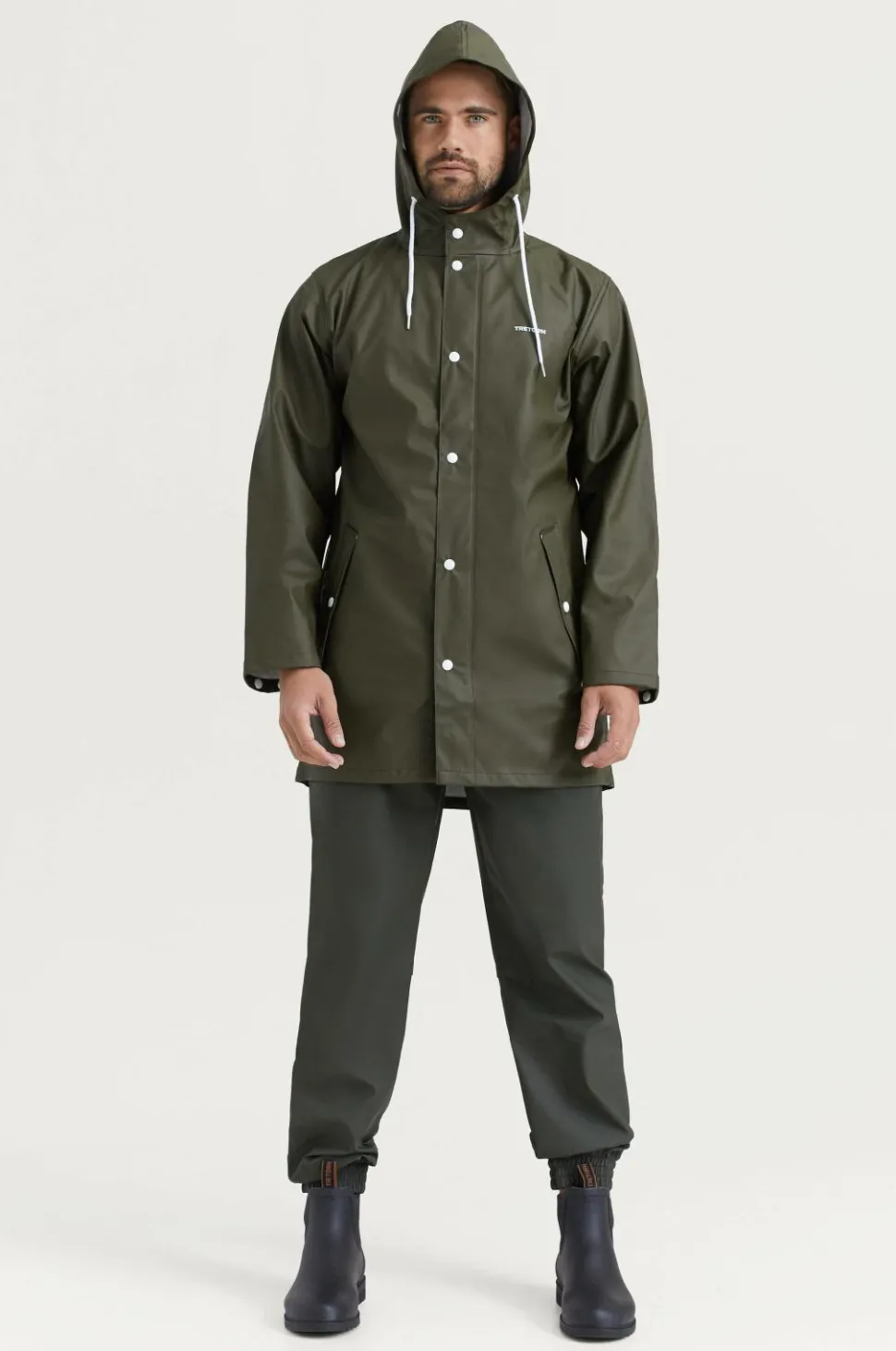Regnjakke Wings Classic fra Tretorn er en ægte klassiker i unisexmodel. Model er lidt længere med hvide detaljer. Den faste hætte har løbegang med snøre foran. Hvide plasttrykknapper foran og i ærmekanten. To forlommer med flap, der holder vand ude. Jakken, som er helt vandtæt, er fremstillet af PVC-fri PU med varmesvejsede sømme. Længde 90 cm i str. M.