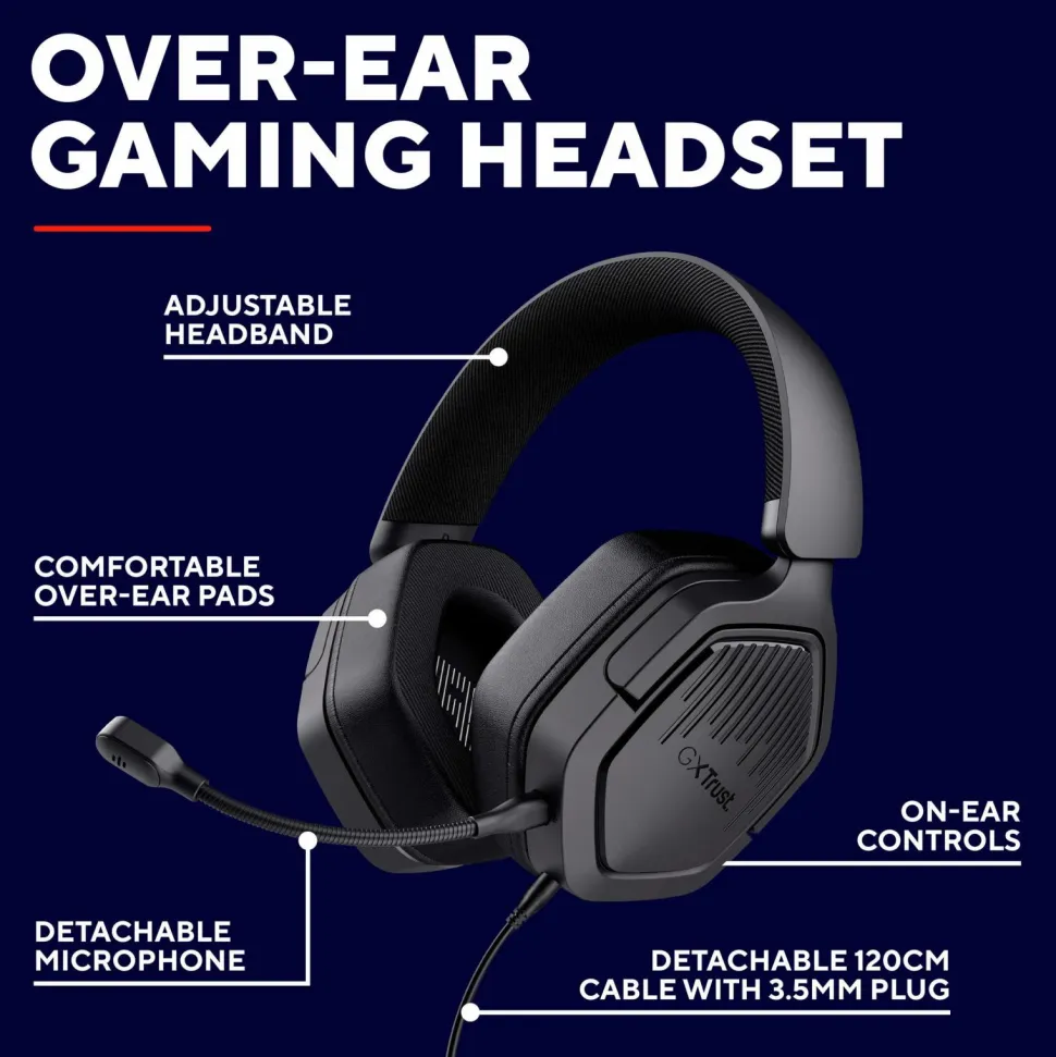 – Komfortabelt over-ear-design med ørepuder i stof og PU-læder, der giver timevis af spillekomfort