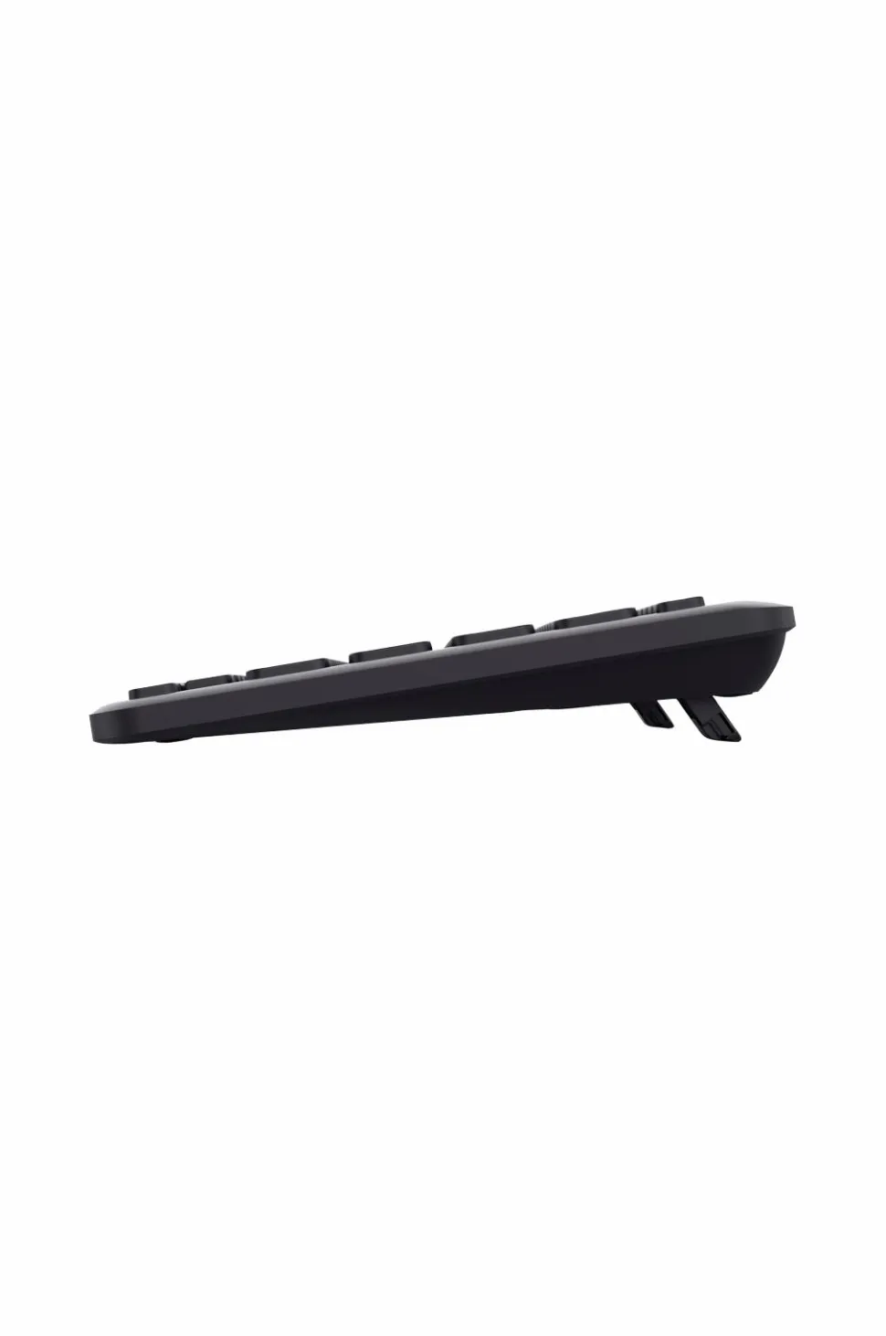 • Har lavprofiltaster og justerbare gummifødder.