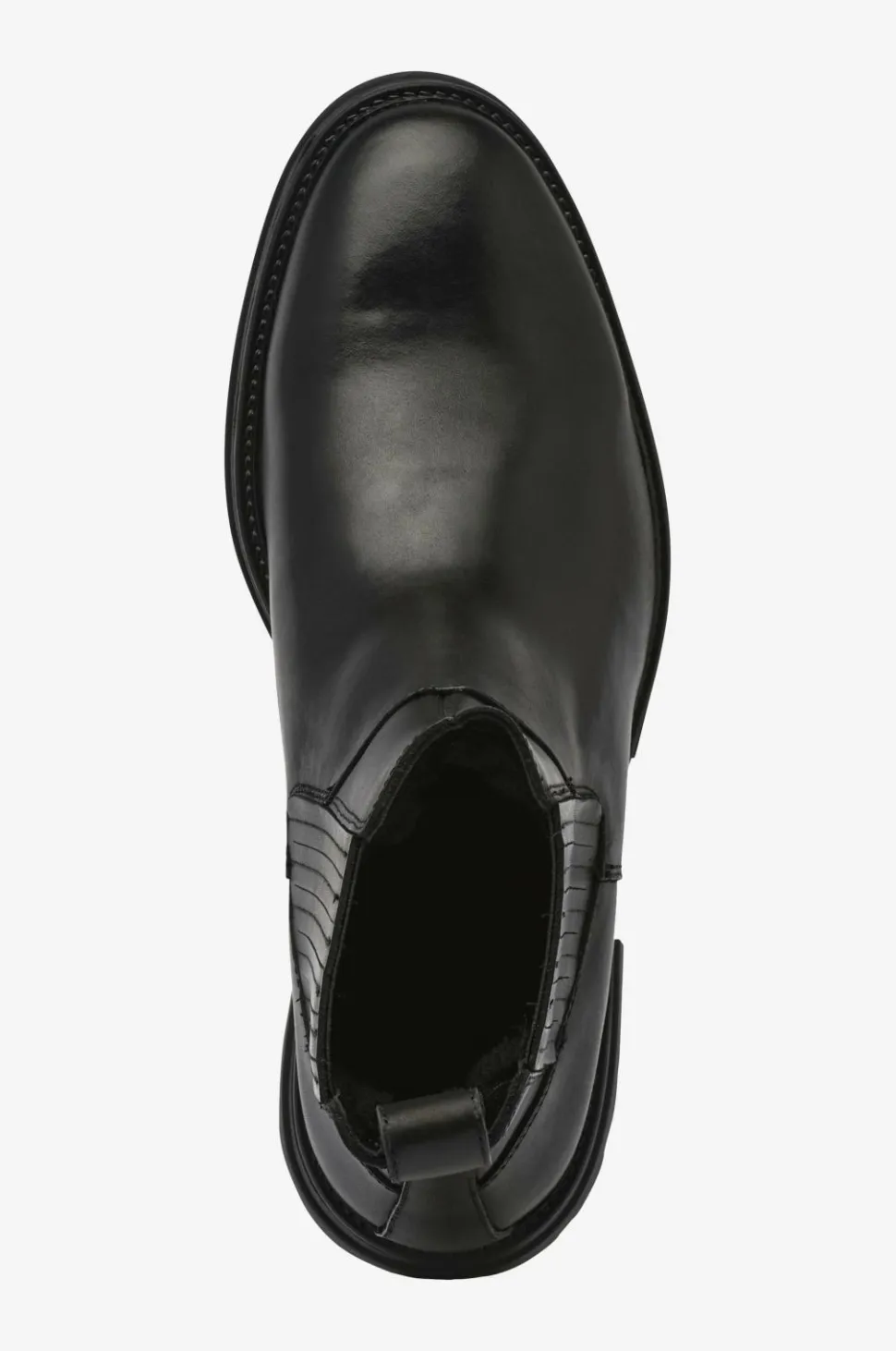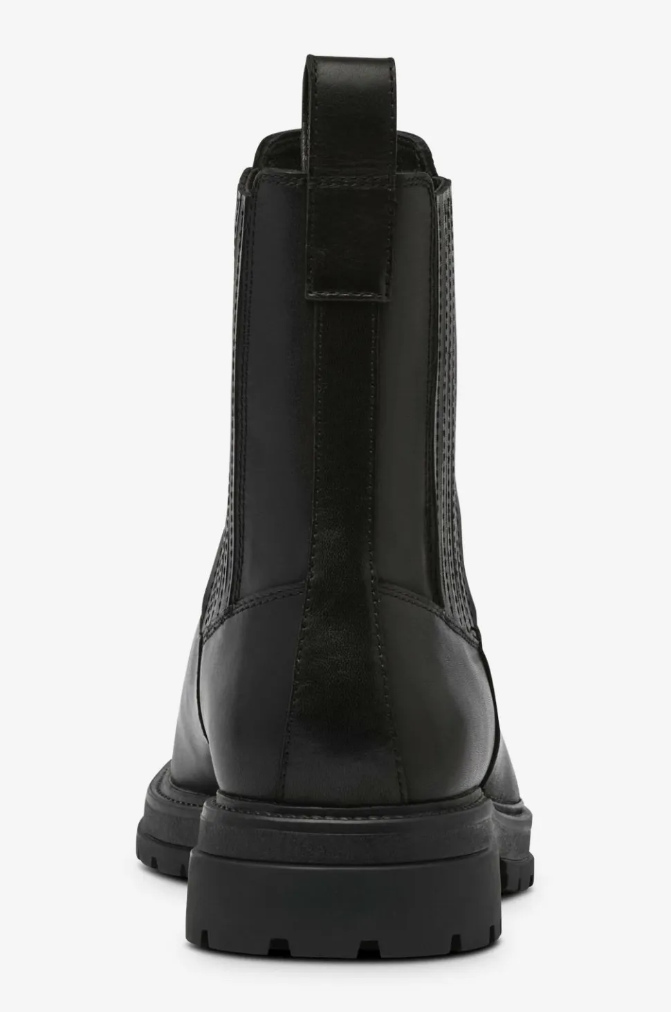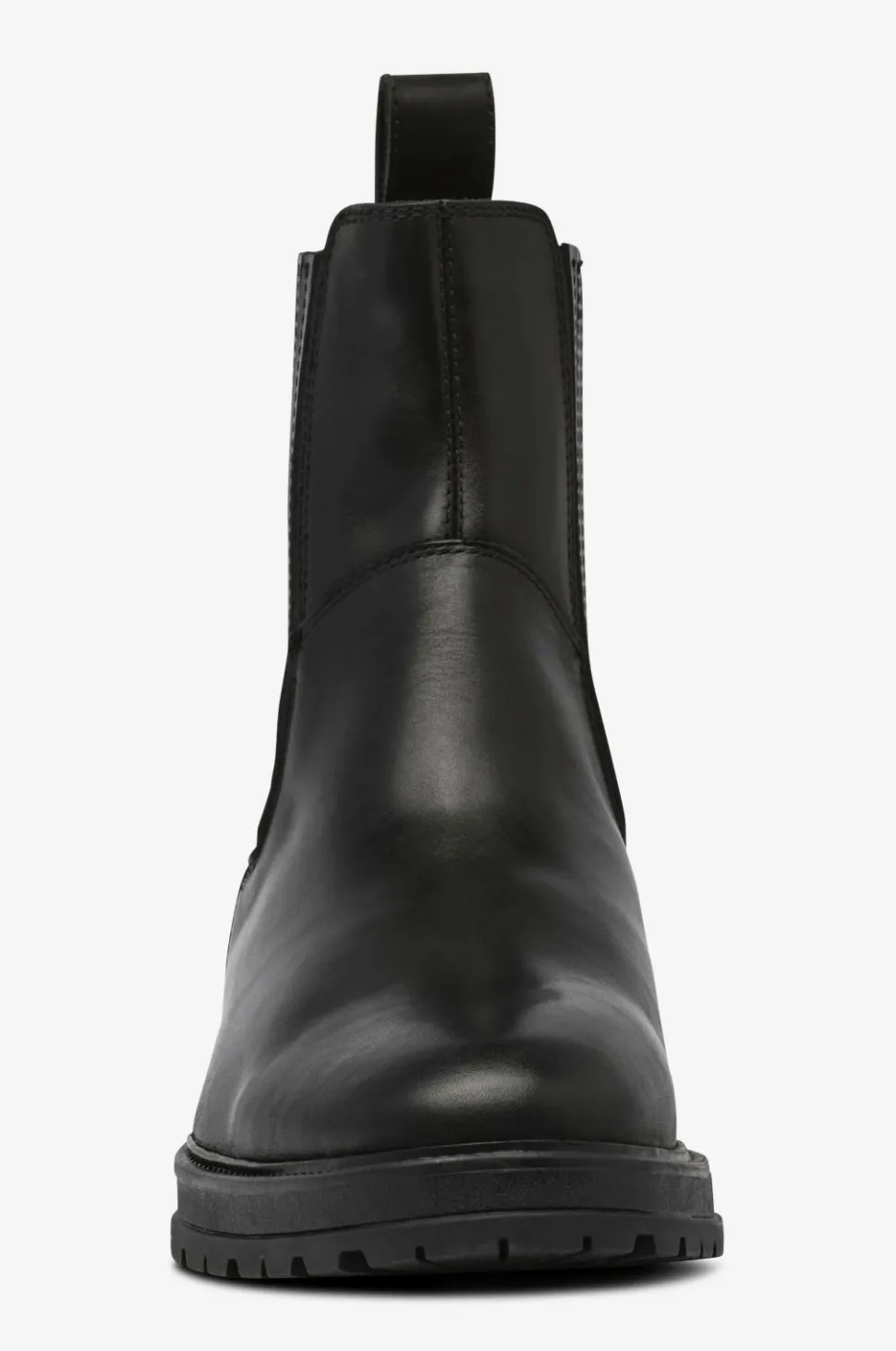 • Varmt foret chelseaboot i læder med afrundet tåform