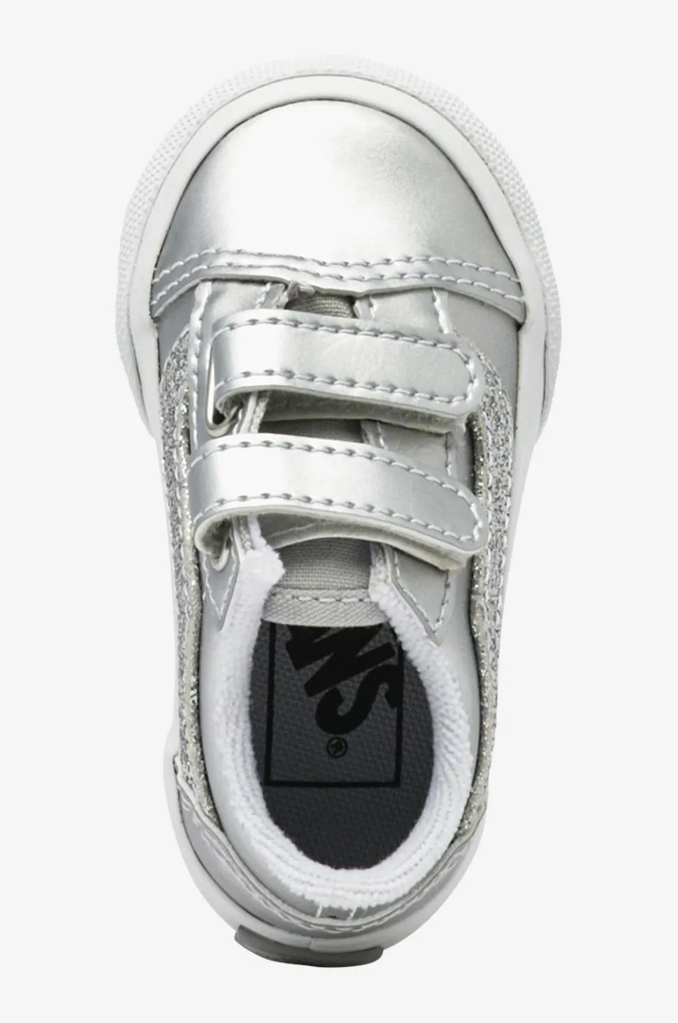 • Sølvagtige sneakers i kunststof med glitrende detaljer i satin på siderne