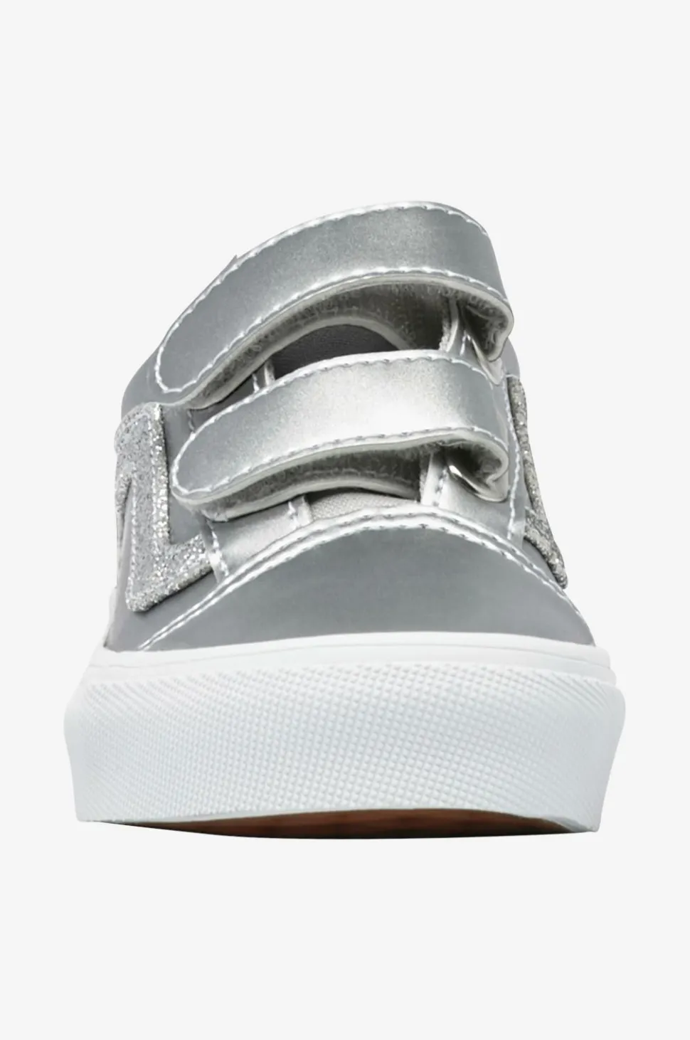 • Sølvagtige sneakers i kunststof med glitrende detaljer i satin på siderne