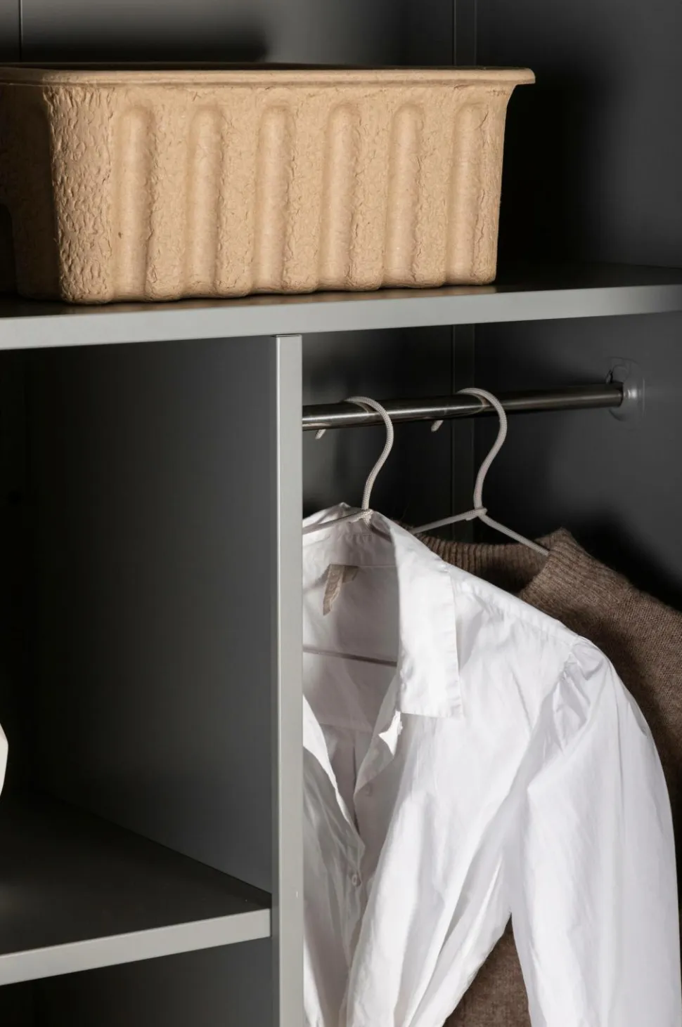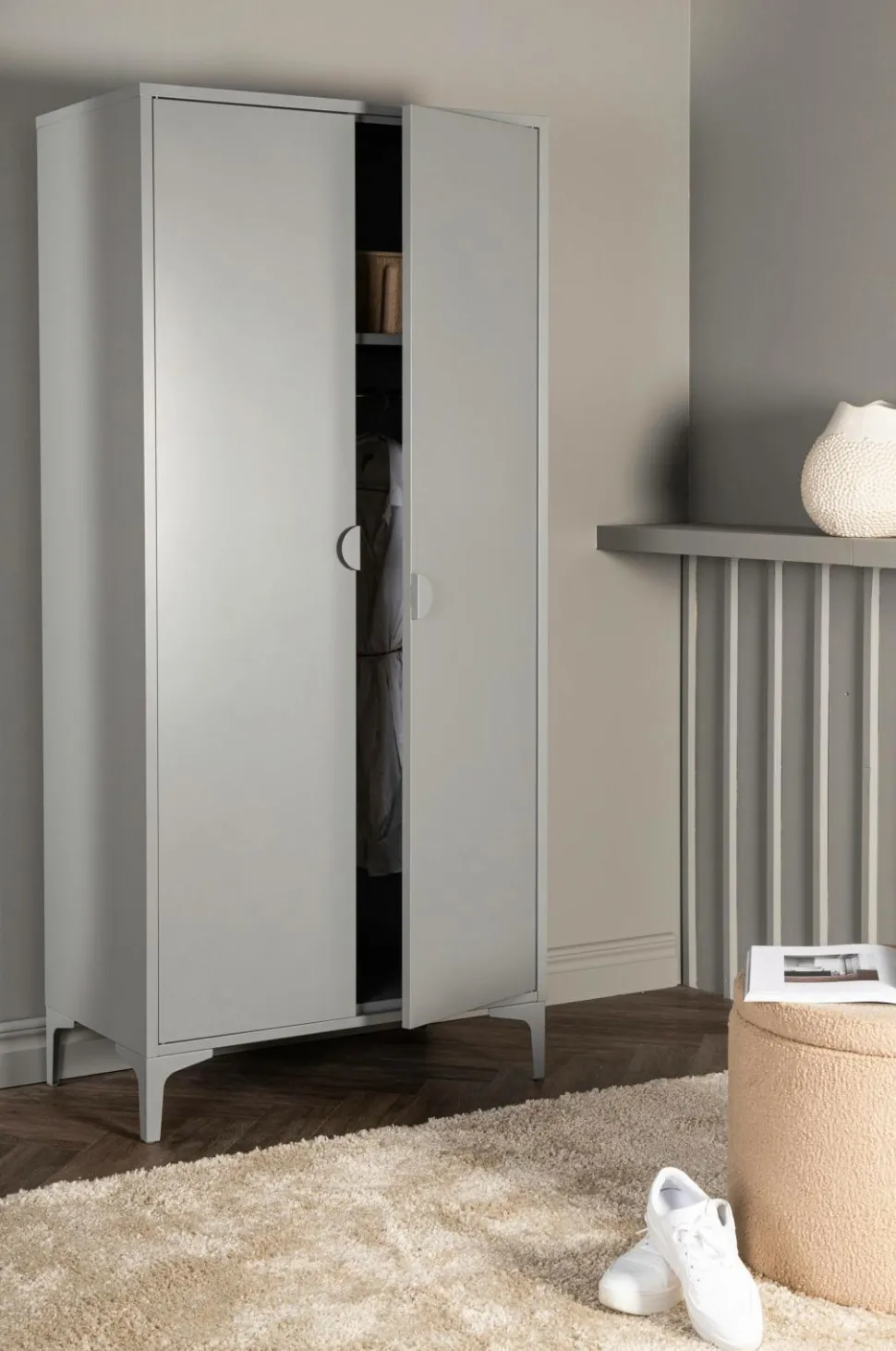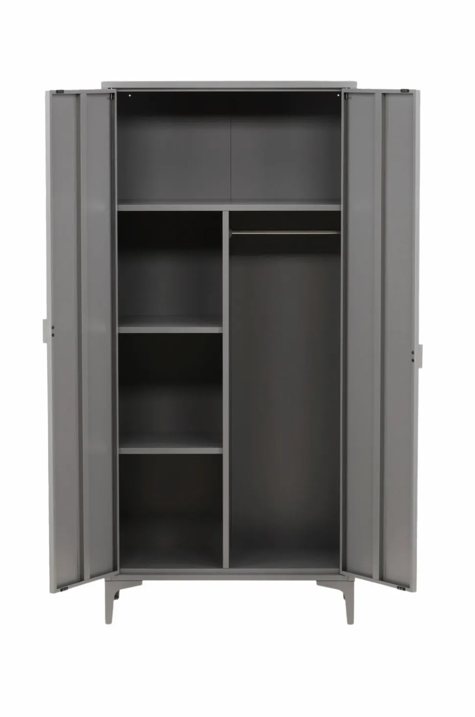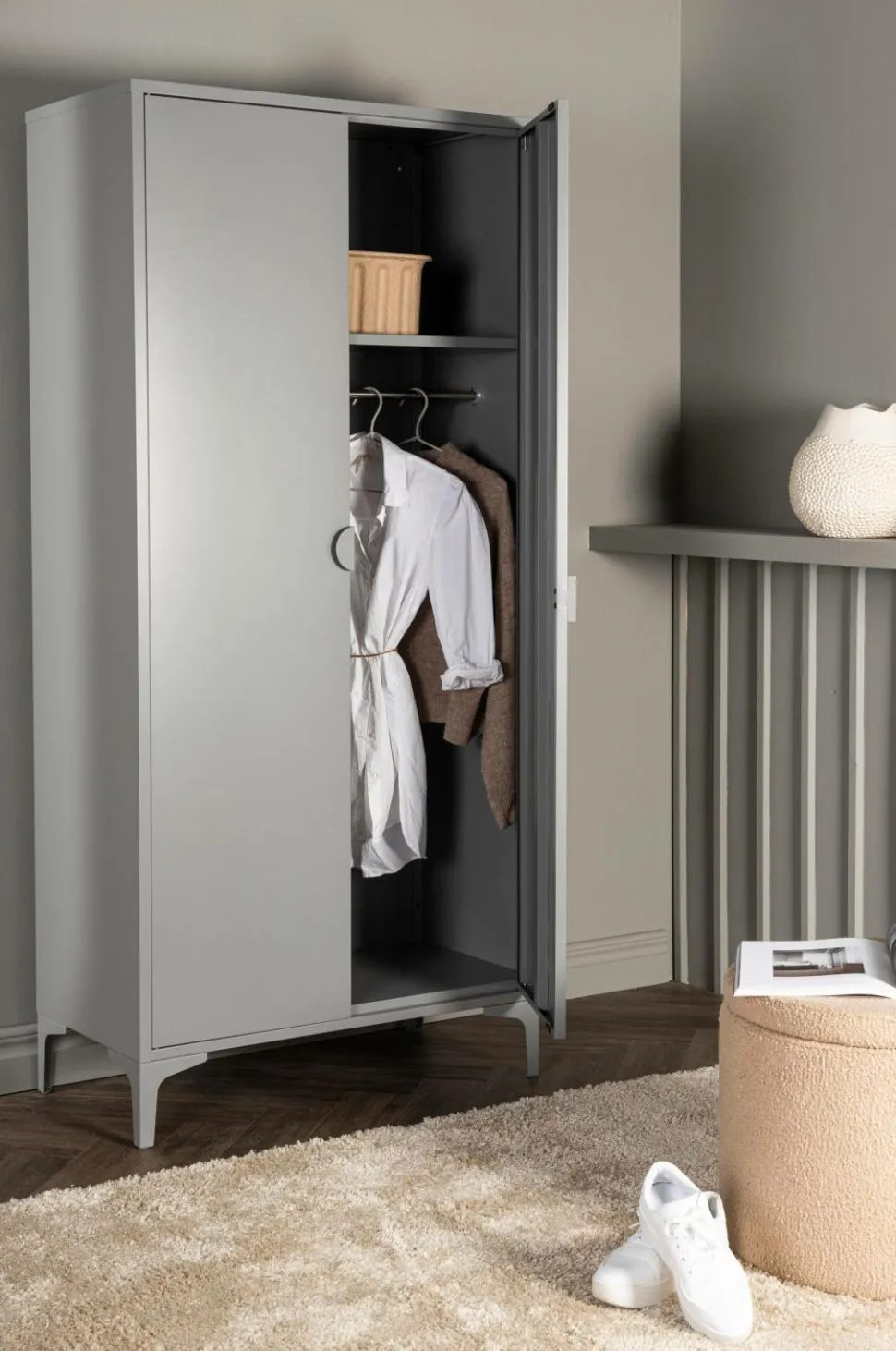 Flot og tidløst Garderobeskabet fra serien Piring er det perfekte supplement til soveværelset! Dette høje garderobeskab i sort stål har to låger, der åbner op til fire hylder og rummer desuden plads til bøjler, så det nystrøgne tøj ikke bliver krøllet. Piring løftes op af fire slanke ben, der skaber et luftigt udtryk og gør det nemt at støvsuge under skabet. Invester i mere opbevaring til dig selv og få et flot møbel i dit bolig med i købet!