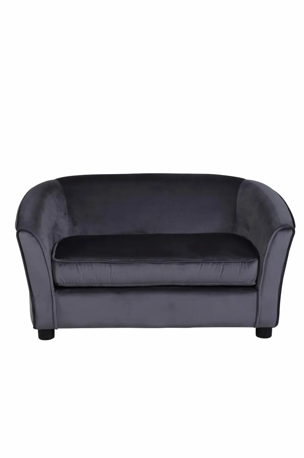 Måna børnesofa i velour og ramme i plywood. Sofaens mål: Siddebredde: 72 cm, Siddedybde: 44 cm, Siddehøjde: 33 cm. Sofaen kræver let montering.