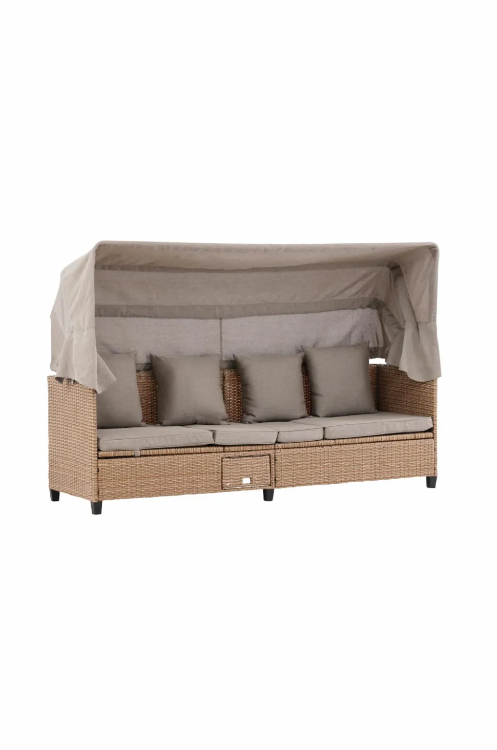 Solvognen fra nopy-serien tager dine afslappende sommerdage til det næste niveau! Fremstillet af sort syntetisk rattan med en justerbar liggesektion for ekstra komfort. Den justerbare parasol i beige polyesterstof giver dig mulighed for nemt at vælge, om du vil ligge i skyggen eller i solen. Bløde, grå, tuftede hynder medfølger for ekstra komfort. Snup en god bog eller nyd en dejlig lur – her kan du sidde eller ligge behageligt i timevis!