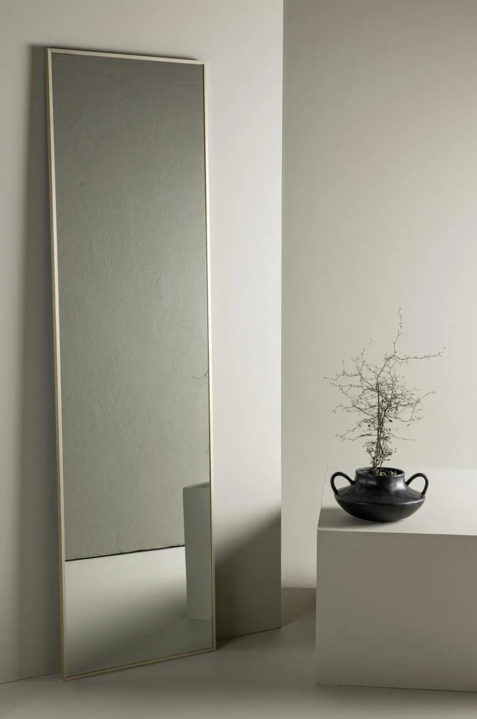 Giv dit hjem en følelse af plads og lys med Orlando-spejlet. Med sine generøse dimensioner på 55×195 cm tilbyder Orlando ikke kun en praktisk refleksion, men også et slankt og moderne dekorativt element, der passer perfekt i forskellige rum. Orlando spejlet har et slankt og minimalistisk design, der passer ind i både moderne og klassiske indretningsstile. Den høje og smalle form gør det ideelt til placering i soveværelset, gangen eller stuen – hvor som helst du ønsker at skabe en følelse af højde og åbenhed. Placer det op ad en væg for at maksimere lysindfaldet, eller brug det som et stilfuldt spejl i fuld længde. Den robuste ramme giver spejlet en stabil konstruktion, mens den elegante overflade bidrager til et sofistikeret udtryk. Uanset om du bruger Orlando-spejlet som et funktionelt værktøj til at se dig selv fra top til tå eller som en dekorativ detalje, der forbedrer dit hjem, vil det helt sikkert blive en favorit i dit indretningsarsenal. Vælg Orlando-spejlet til et hjem, hvor alle detaljer tæller. Det er ikke bare et spejl, men et udtryk for din personlige stil og en måde at skabe et rum med karakter og skønhed på. Vægbeslag er inkluderet