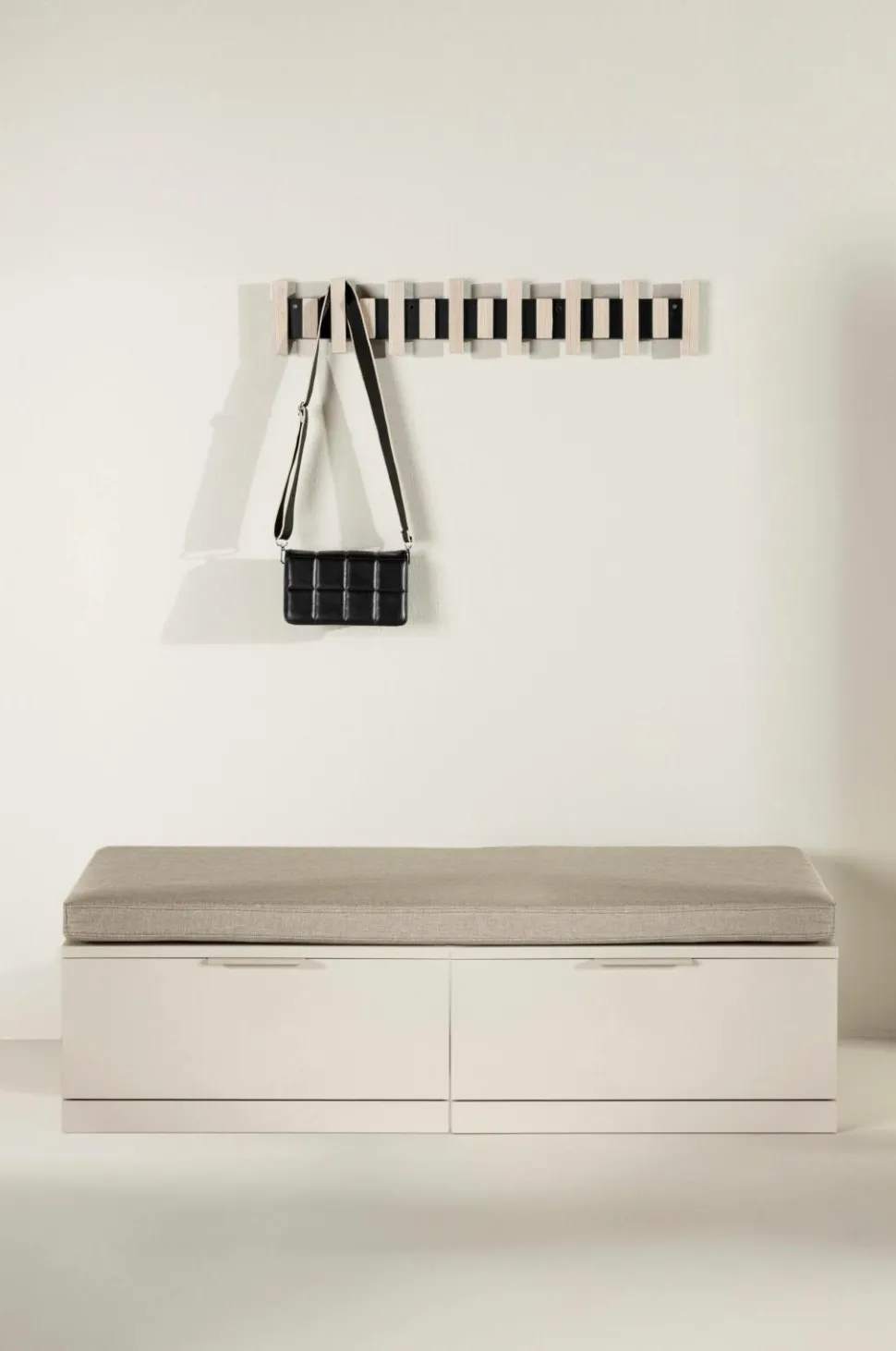Her får du en gang, der byder dig og dine gæster varmt velkommen. Tilføj et strejf af funktionalitet og stil til din indretning med den fine opbevaringspude. Den fås i to forskellige størrelser, afhængigt af hvor mange opbevaringsbokse du har nedenunder! Dimensioner: 120×60 cm.