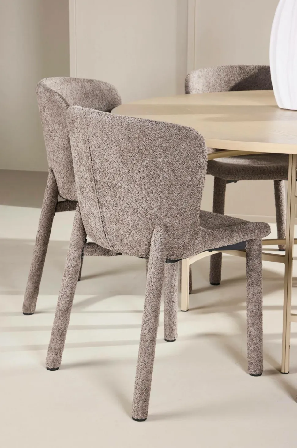 Astoria-spisestolen har et luksuriøst, struktureret betræk, der giver et raffineret touch med sin bløde fornemmelse og subtile struktur. Dens alsidige design gør den nem at integrere i forskellige indretningsstile, fra moderne minimalisme til klassisk elegance. Med sit ergonomiske ryglæn og generøse polstring i sæde og ryg giver astoria overlegen komfort, hvilket gør den ideel til lange middage og sociale øjeblikke med familie og venner.