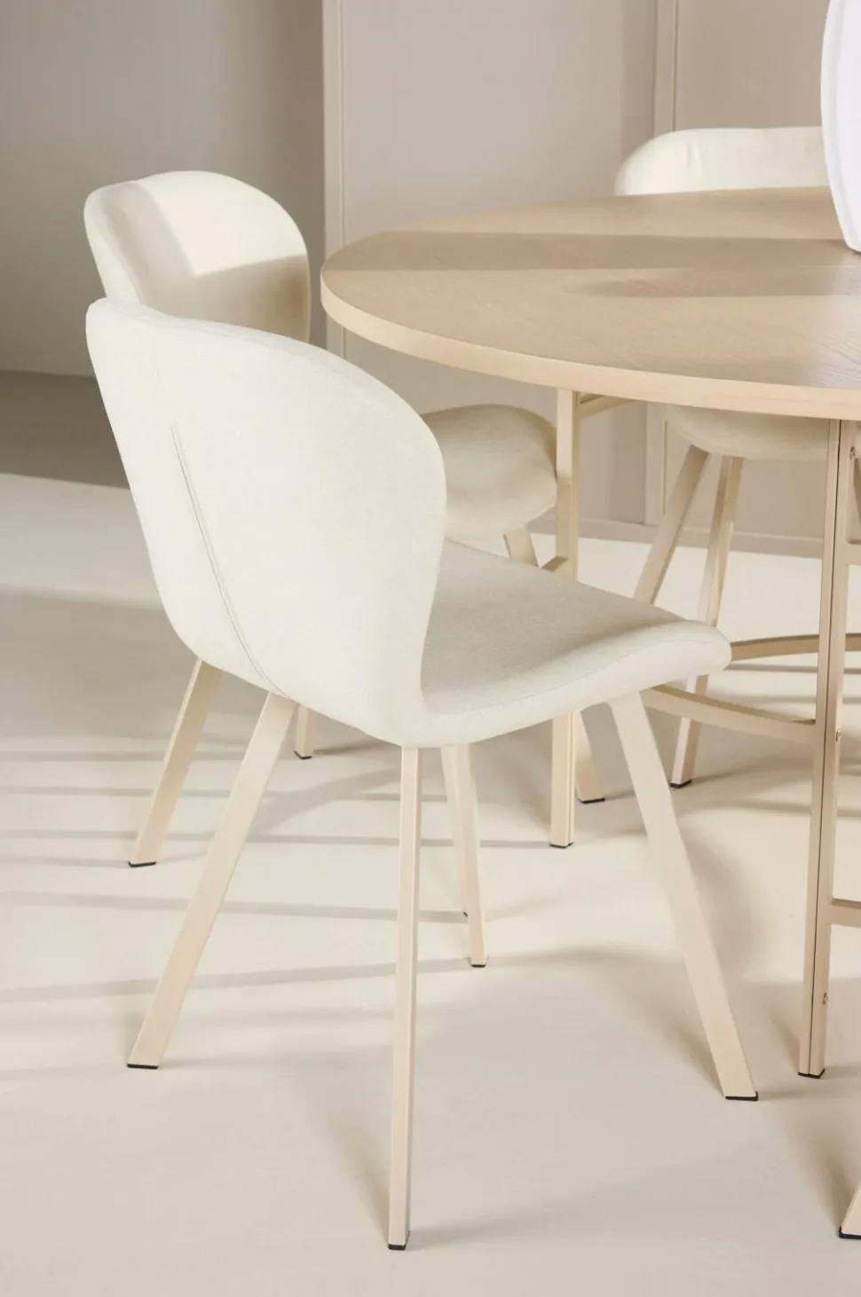copenhagen-spisebordets runde form indbyder til fællesskab og naturlig interaktion ved hvert måltid, mens lilja-stolens komfortable og elegante design sikrer, at hver eneste siddeplads bliver en fornøjelse. Lad lilja-spisestolen og copenhagen-spisebordet sammen forvandle din spisestue til et sted, hvor stil, funktion og komfort mødes. Skab et elegant og indbydende miljø, hvor hvert måltid bliver en behagelig oplevelse.