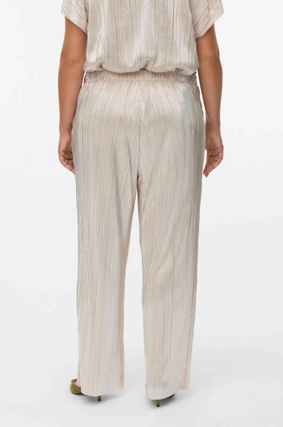 • Plisserede bukser med glimmerprint overalt