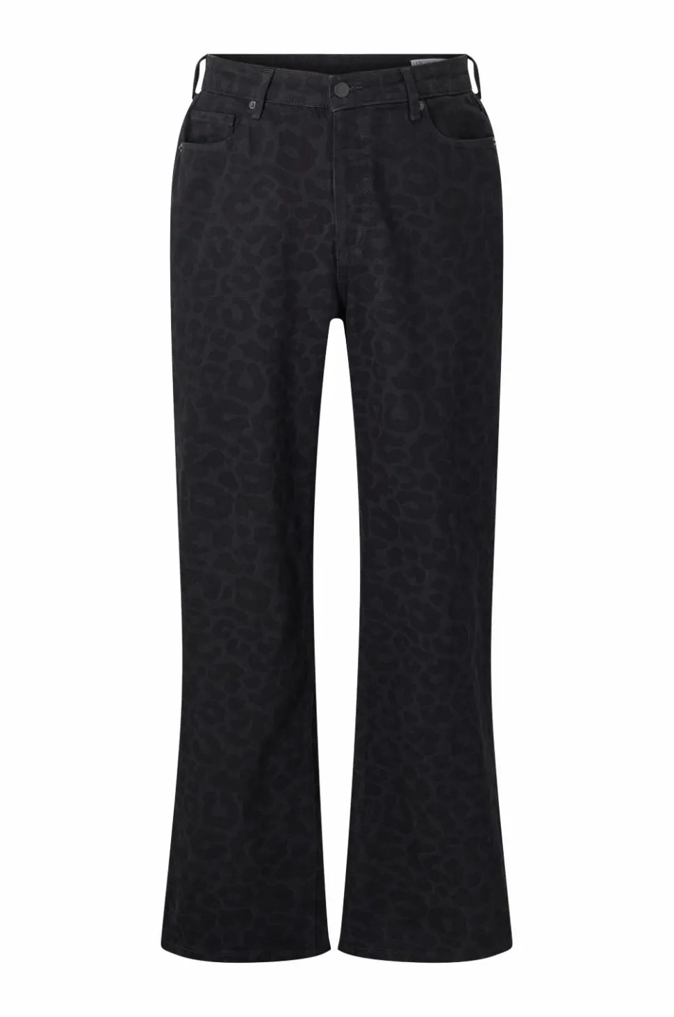 • Højtaljede, leopardmønstrede jeans med brede ben