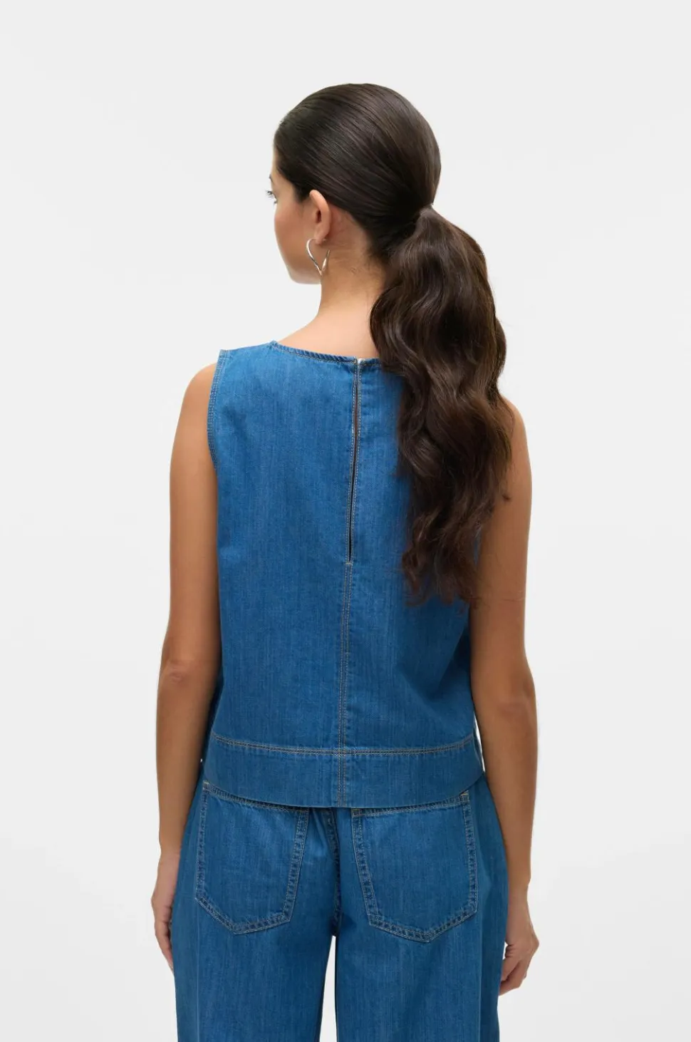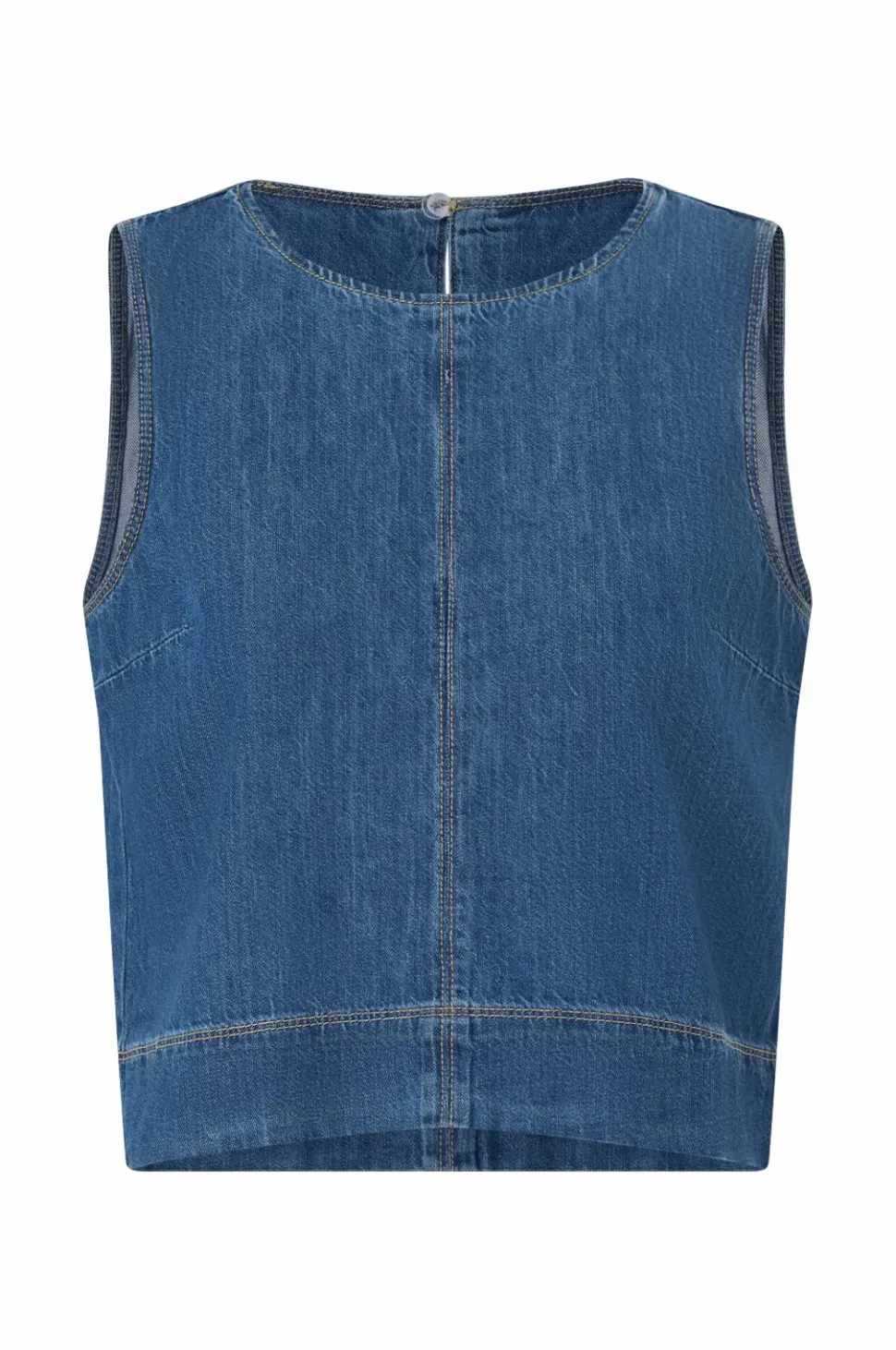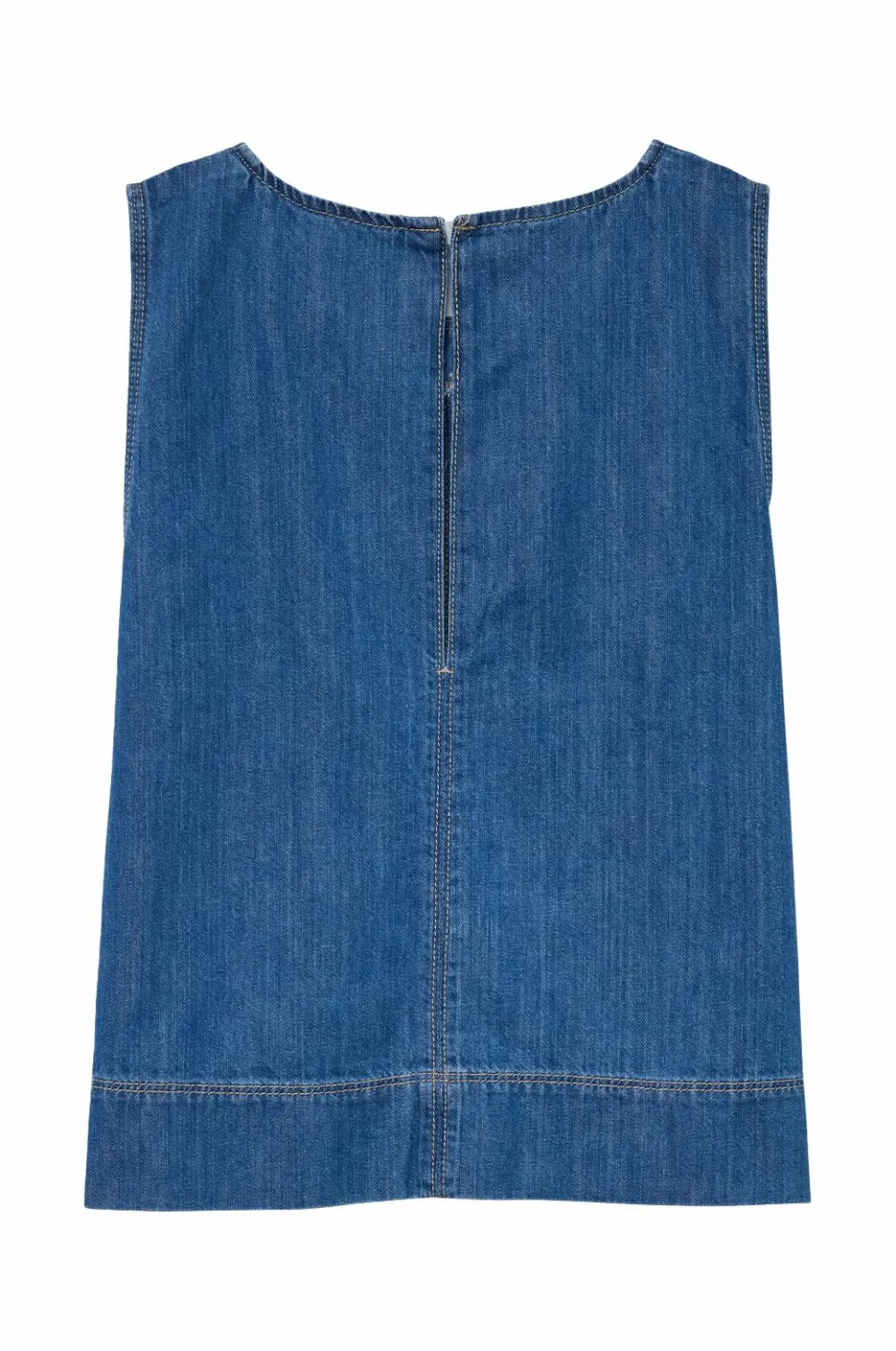• Ærmeløs top i bomuldsdenim med lige pasform