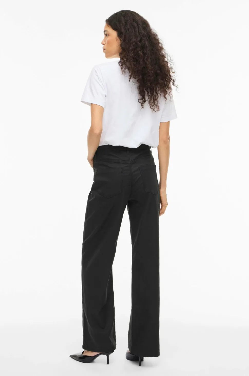 • Højtaljede jeans med belagt overflade