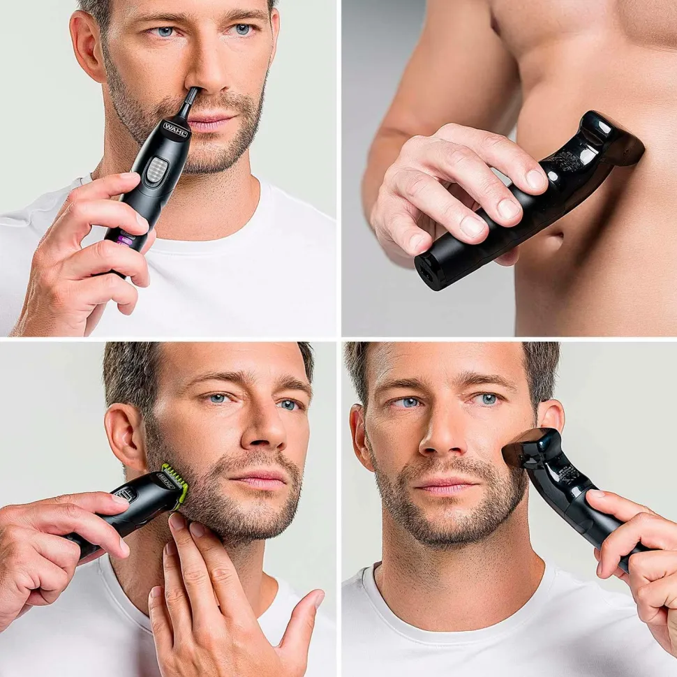 – Fleksibilitet: 4 udskiftelige vaskbare hoveder for at hjælpe dig med at bevare stilen fra top til tå. Trimning, pleje, barbering og fjernelse af uønsket hår fra ører og næse.