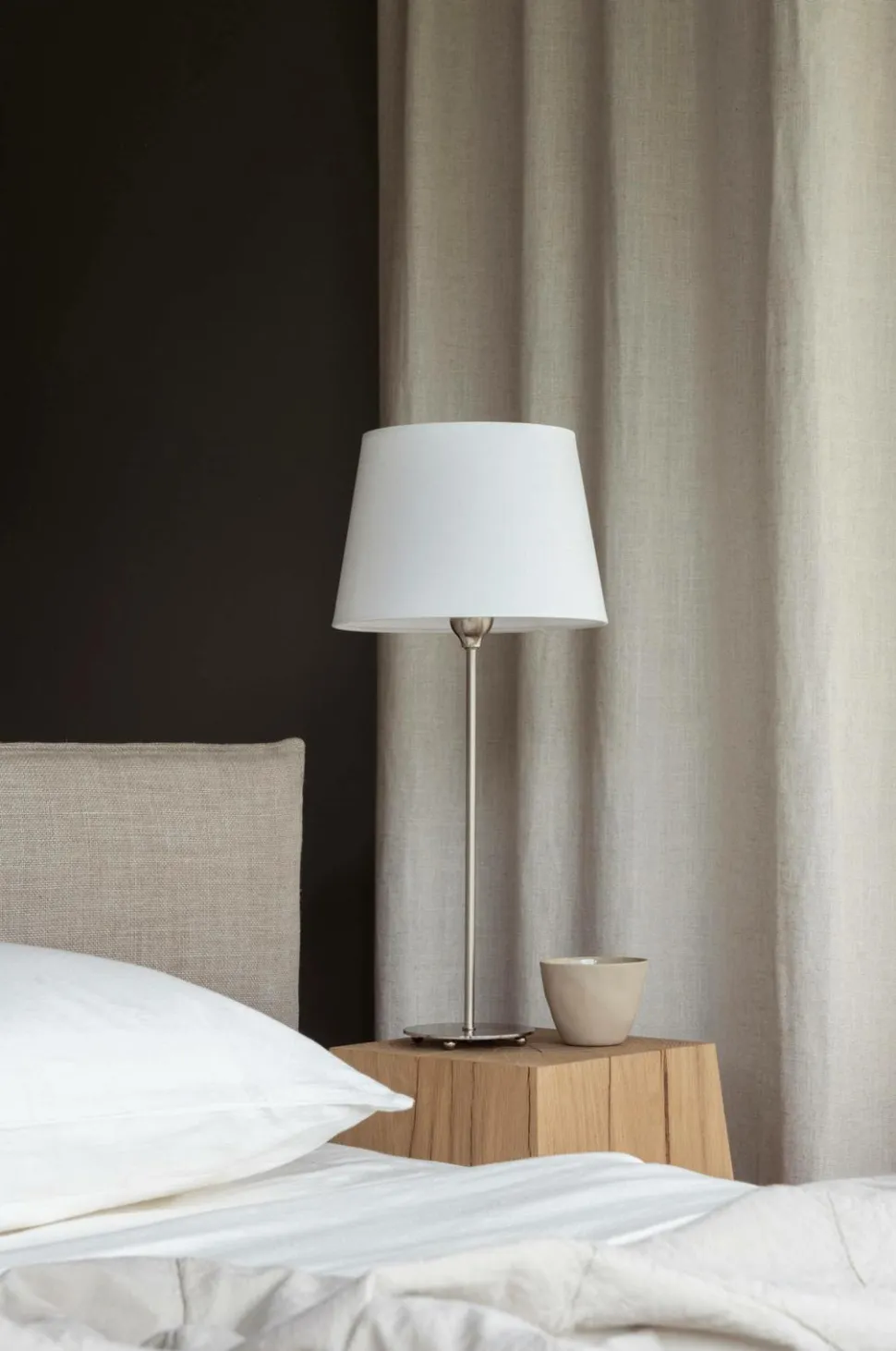 Line table 45 Gold er en stilren bordlampe med enkle linjer i metal og har en elegant tekstilledning. Vælg selv det udtryk, du vil skabe med denne model, da Line passer perfekt til mange forskellige typer lampeskærme fra vores brede sortiment. Lampen føles rar, hvor den balancerer på kuglerne under bundpladen, og passer perfekt i den lille vindueskarm, hvor man ønsker lidt højde, eller på et lille sidebord eller som læselampe på natbordet.