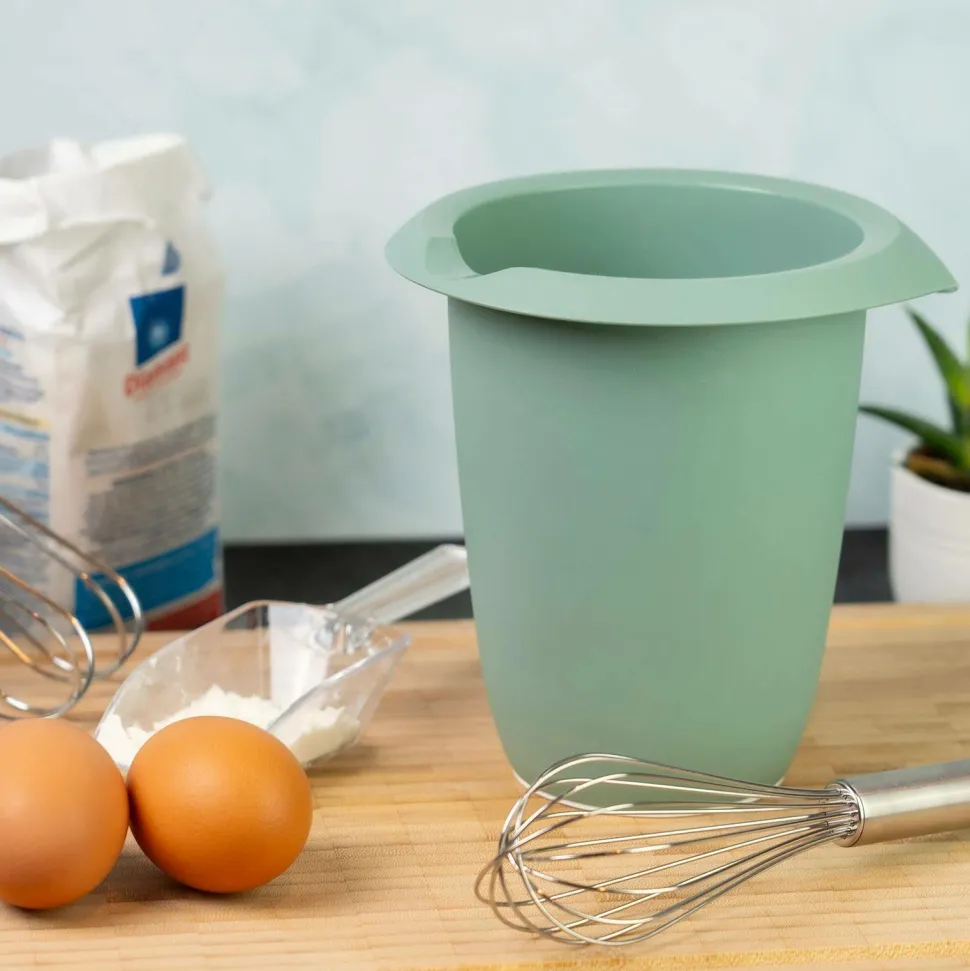 Gør dig klar, sæt i gang, bland! Denne klassiske røreskål uden låg er perfekt til at blande og røre i madlavnings- og bageingredienser samt til at piske æggehvider og fløde til perfektion. Med en kapacitet på 1 liter er den ideel til brug med røremaskiner, der er udstyret med to piskeris. Gummiringen i bunden giver ekstra stabilitet på glatte overflader, mens det brede håndtag hjælper med at holde skålen stabil under brug.