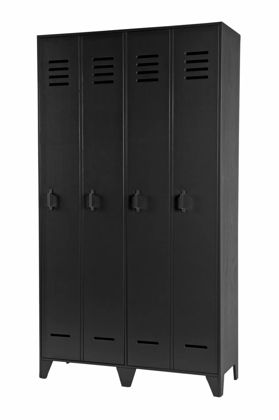 Stijn er en ny serie garderobeskabe fra WOOOD. Det er et robust garderobeskab fremstillet i massivt fyrretræ. Det rummelige garderobeskab med to låger giver god opbevaring. Fire monterede hylder bag hver låge. For at give en fin effekt ser det ud som om skabet har fire låger, men af praktiske årsager er det to større låger. Dette garderobeskab er perfekt til soveværelset, men også meget trendy til f.eks. kontoret.