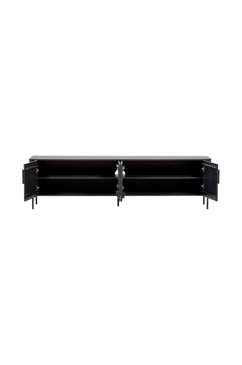 Elegant og moderne – det er kendetegnene for tv-skabet Gunnar fra det hollandske interiørdesignmærke Wood. Opbevar dine tilbehør sikkert bag en af de fire døre, og nyd en aften foran tv’et på sofaen. Dette rummelige tv-skab har en mat sort finish og er en stilfuld tilføjelse til dit interiør!