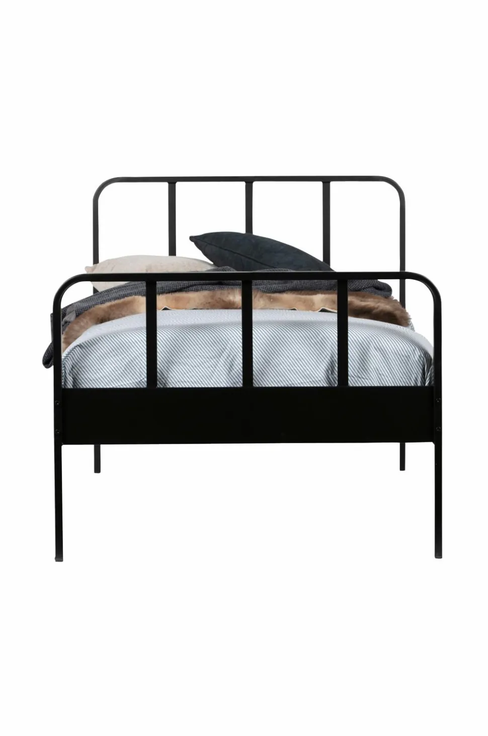 Denne robuste og moderne seng Mees er ny i kollektionen fra WOOOD! Den er et reelt aktiv til ethvert børneværelse! Stellet er af stål med en finish med sort pulverlakering. Lamelbunden er af metal og har 16 lameller. Mees er velegnet til madrasmål 90×200 cm. Sengen leveres uden madras.