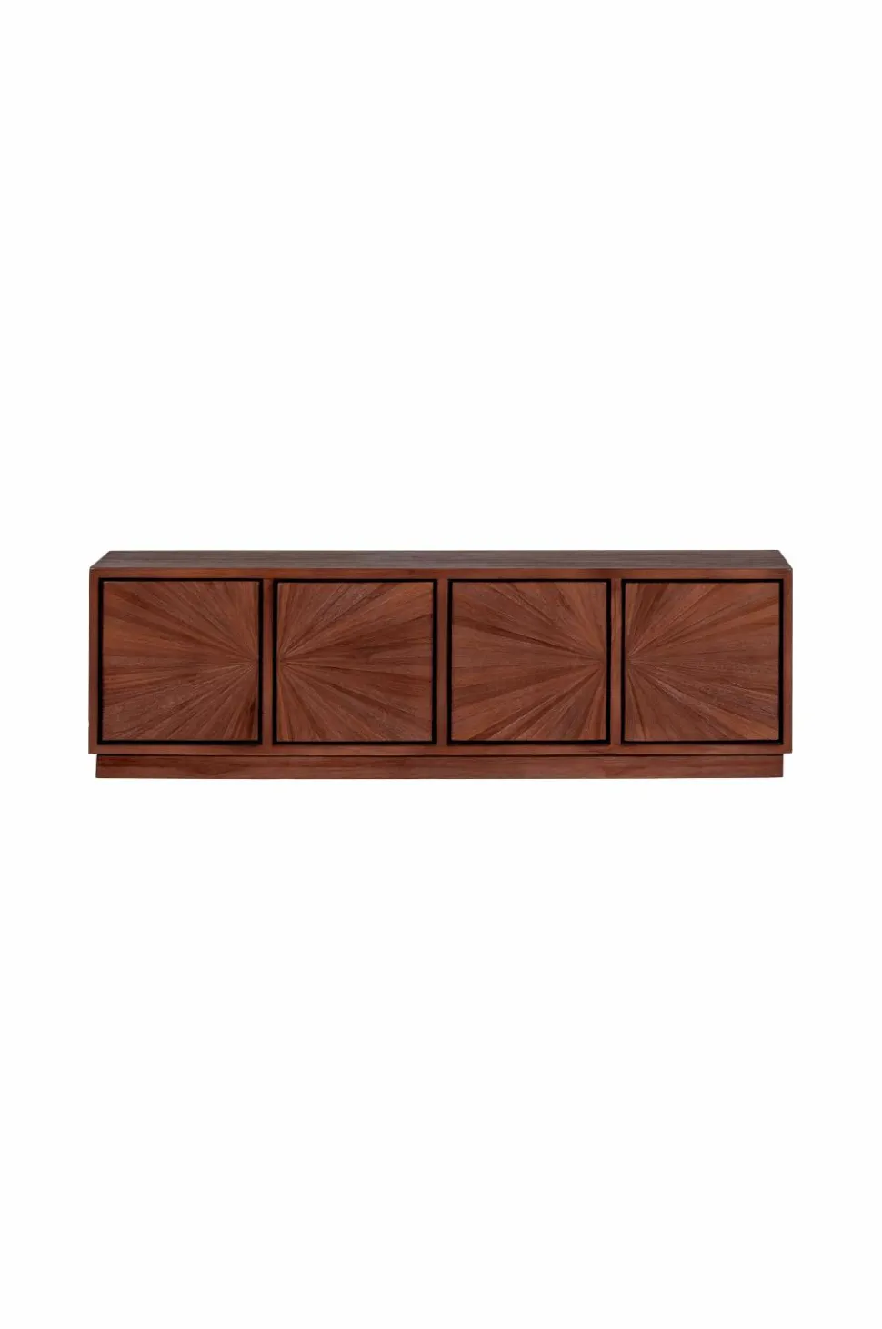 leder du efter et tv-skab, der både er stilfuldt og praktisk? Så vælg sun! Sun tv-skabet er en del af kollektionen fra det hollandske interiørdesignmærke woood og er fremstillet af genbrugt teaktræ. De raffinerede detaljer på lågerne giver skabet et unikt, håndværksmæssigt look. Bag de fire låger er der rigelig opbevaringsplads til udstyr eller andet tilbehør. På den måde kan du nemt opbevare alt!