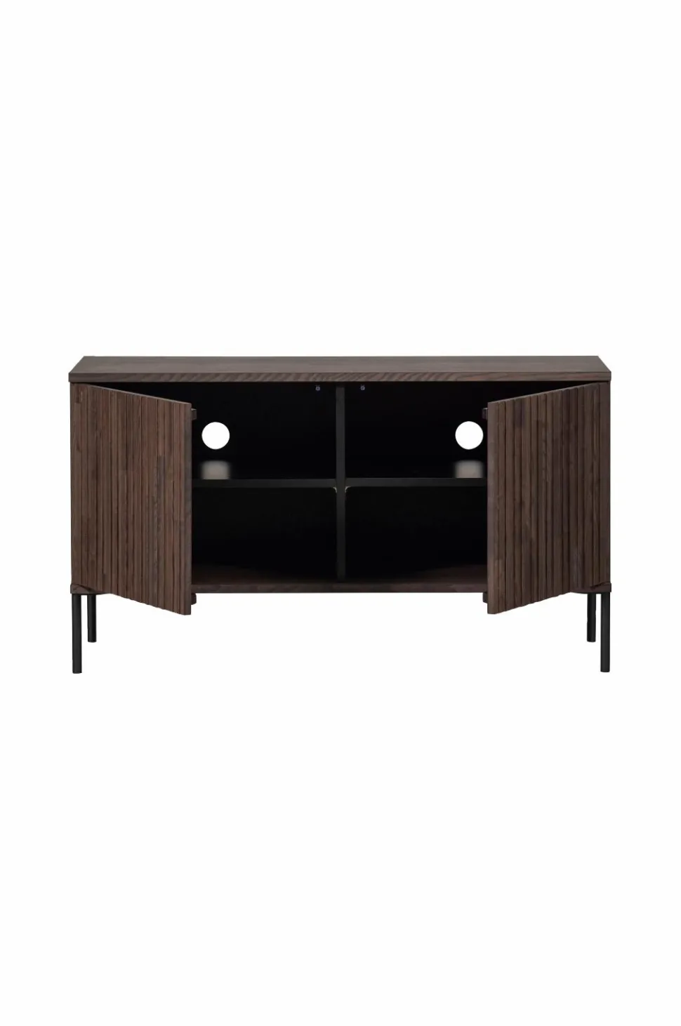 Stabil tv-bænk med grafisk reliefmønster på lågerne