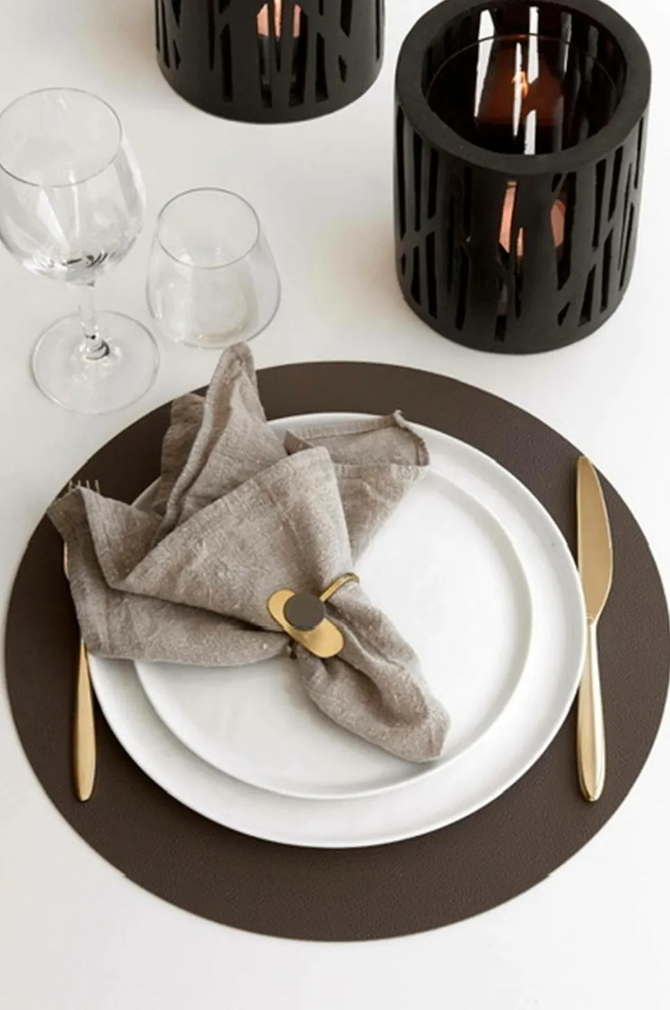 Dækkeservietter i kunstlæder, perfekte for smukke borddækninger. Flot oval form i blød beige farve.