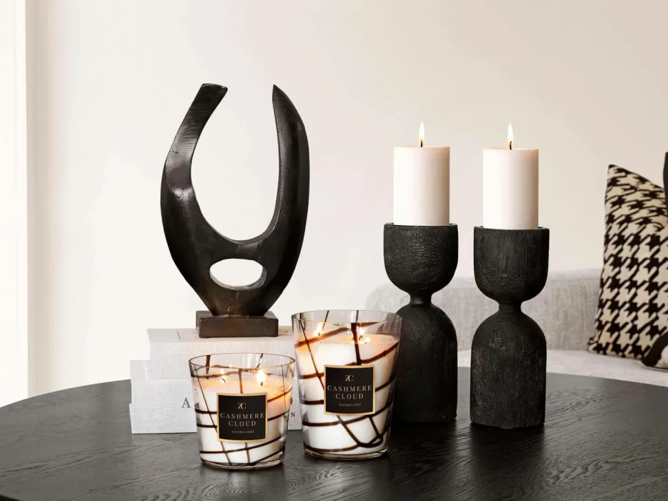 Stort luksuriøst duftlys med 500 gram stearin/sojavoks. Elegant glasbeholder med mørke detaljer. Dejlig duft af panjore litchi, pære og solbær. Brændetid 60 t.