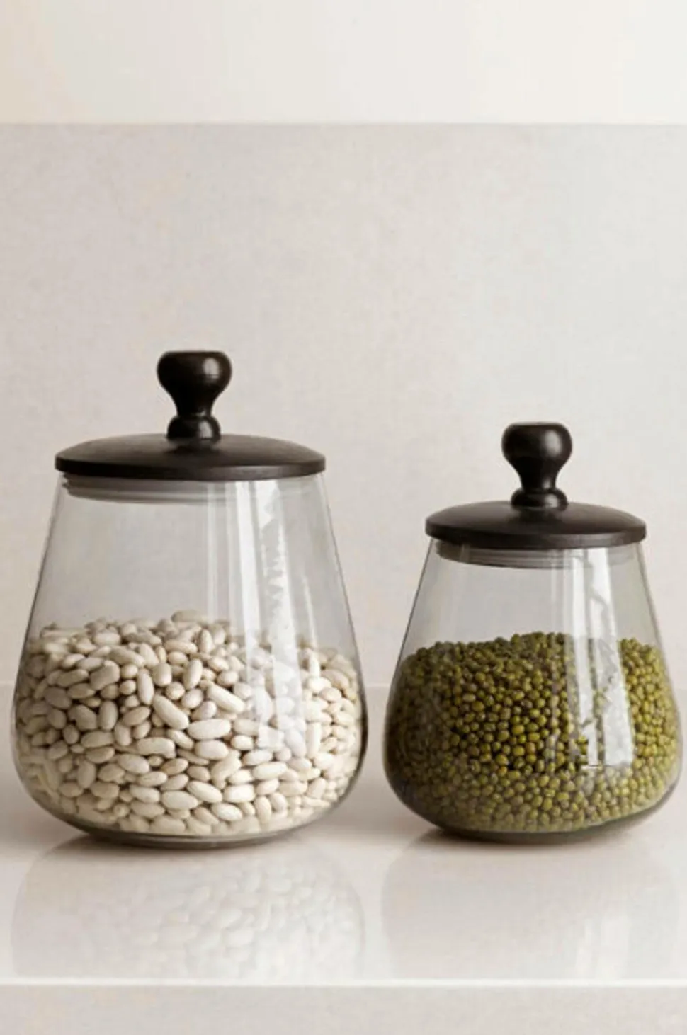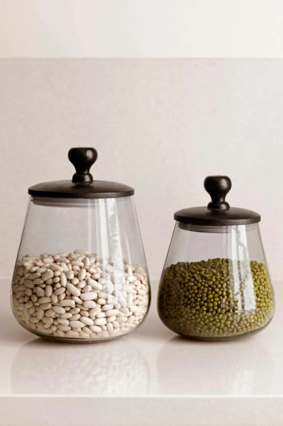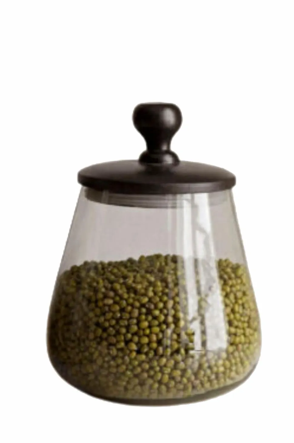 Håndlavet glaskrukke med sort trælåg. En sød ting til opbevaring i køkkenet.