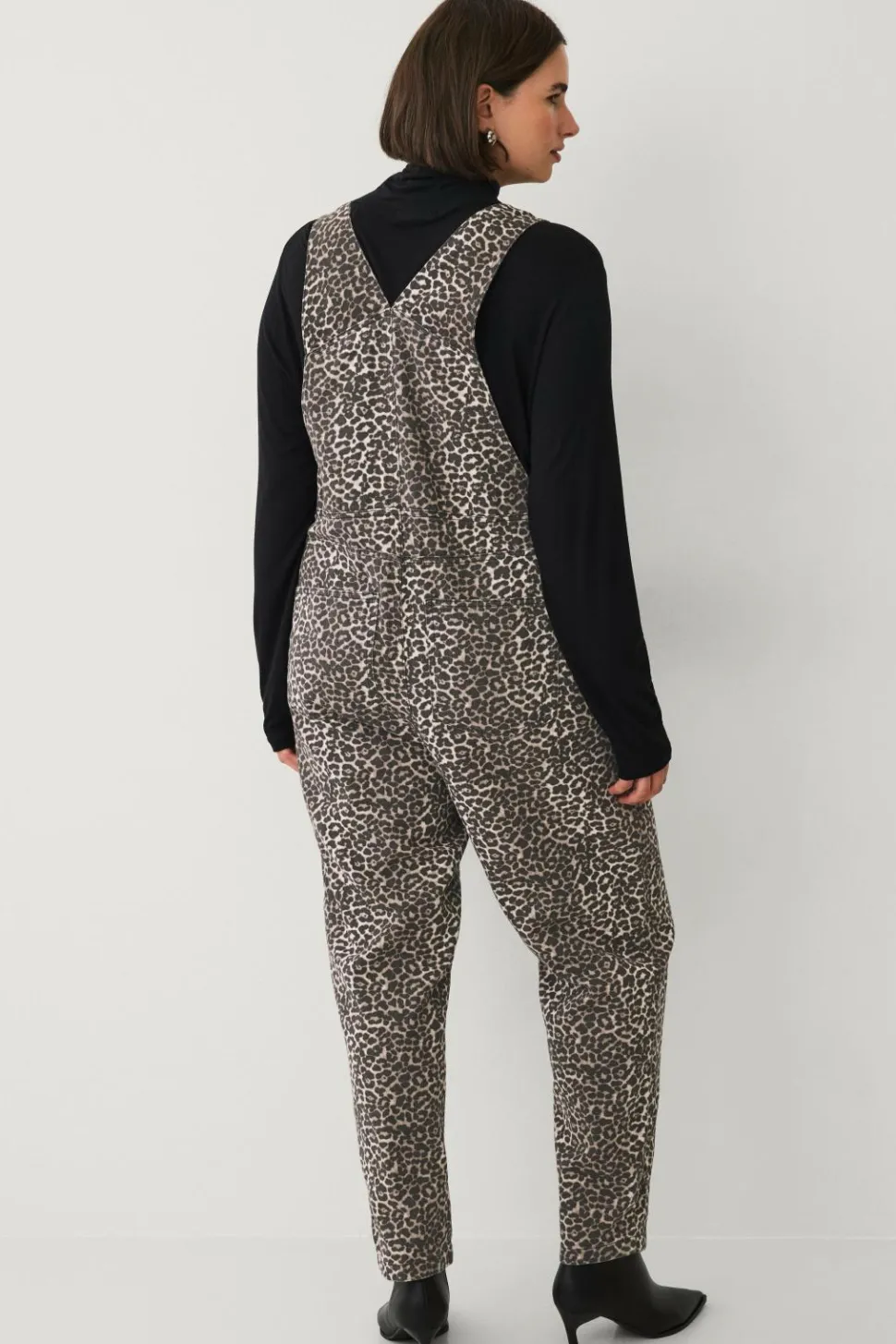 • Leopardmønstrede overalls i denim