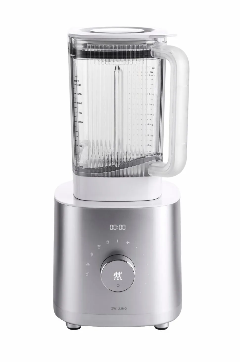 Zwilling ENFINIGY-seriens højtydende Power Blender. Den specielle kniv med piranha-tænder garanterer nem og præcis blanding. Premium ZWILLING kniv i rustfrit stål og kraftfuld 1600 watt motor. Blenderens 1,8 liter kande er lavet med BPA-fri Tritan og er perfekt designet til store portioner. Den er både holdbar og varme- og kuldebestandig. Rengøring i hånden eller med det indbyggede rengøringsprogram anbefales. Ydersiden af den professionelle blender er også nem at rengøre takket være det moderne design med én knap med indbygget LCD display. Den indbyggede sikkerhedsfunktion forhindrer blenderen i at kunne køre uden låget lukket og dermed undgår man risikoen for skader. Seks automatiske programmer (puls, smoothie, cocktail, is, isknusning og rengøring) og 12 hastighedsindstillinger.