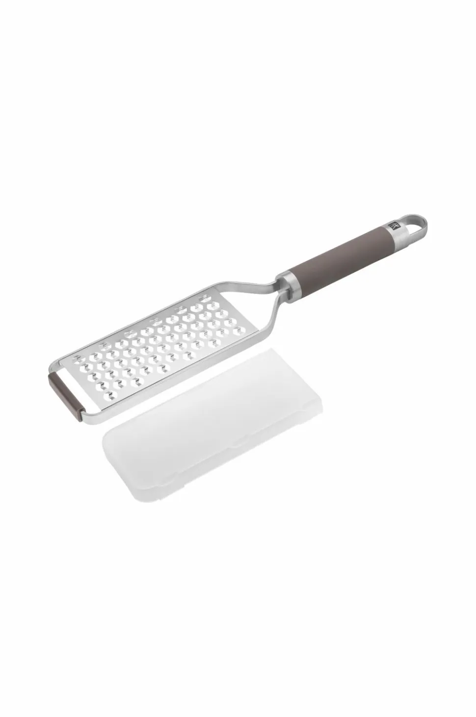 Rivbladet er udformet til at tage sig igennem hårde og tykke fødevarer. De har en innovativ 2-vejs teknik som lader dig rive i begge retninger, tillverkade med den långa traditionen av hantverk och expertis som bara zwilling kan erbjuda. Fremstillet af højeste kvalitet, med et ergonomisk håndtag for et bekvemt og stabilt greb, samt en halvfri fod som lader dig vila rivjärnet for ultimat stabilitet. Komplett med skyddande plastöverdrag för att skydda rivytan (och dina fingrar!) så att det är säkert att förvara i en låda; det finns också en praktisk krok för bekväm hängande förvaring.