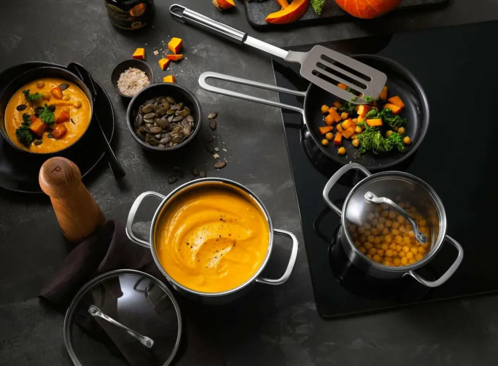 Sæt med fire gryder fra Zwillings Pico-serie. Takket være Sigma Classic-bunden i flere lag med en aluminiumskerne kan du bruge dem på alle typer komfurer, inkl. induktion. Glaslåget passer perfekt og lader dig holde øje med tilberedningen. På den måde bevares varmen hvor den skal være inden i gryden. De praktiske håndtag holder sig kolde i lang tid, så gryderne kan flyttes når som helst.