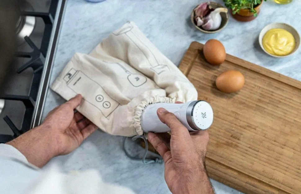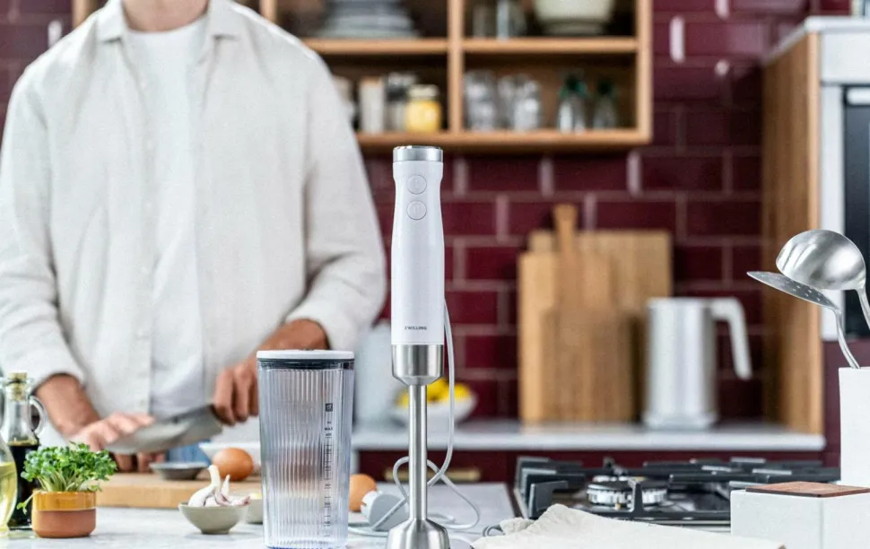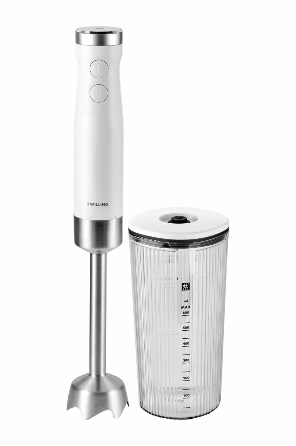 det vassa zwilling winglet-knivbladet med “piranha-tænder” giver de fineste blandingsresultater. Stavens klokkeform forbedrer håndteringen og er mere ergonomisk. Den fungerer perfekt med den medfølgende blandingskanne eller direkte i grytan. Kannan på 600 ml er fremstillet af bpa-fri plast og har en lås, som er kompatibel med vores vakuumpumpe. Du kan til eksempel forberede såser i förväg på morgonen, vakuumförsluta och njuta av dem färska på kvällen, eller förbereda råvarona dagen innan så det bara är att mixa när det är dags för middagen. Andre fordele med stavmixern: mjukstartsfunktionen som minskar stänk, en intuitiv 2-knappsmanövrering och en 1,2 meter lång kabel som ger dig ny frihet i köket när du använder stavmixern.