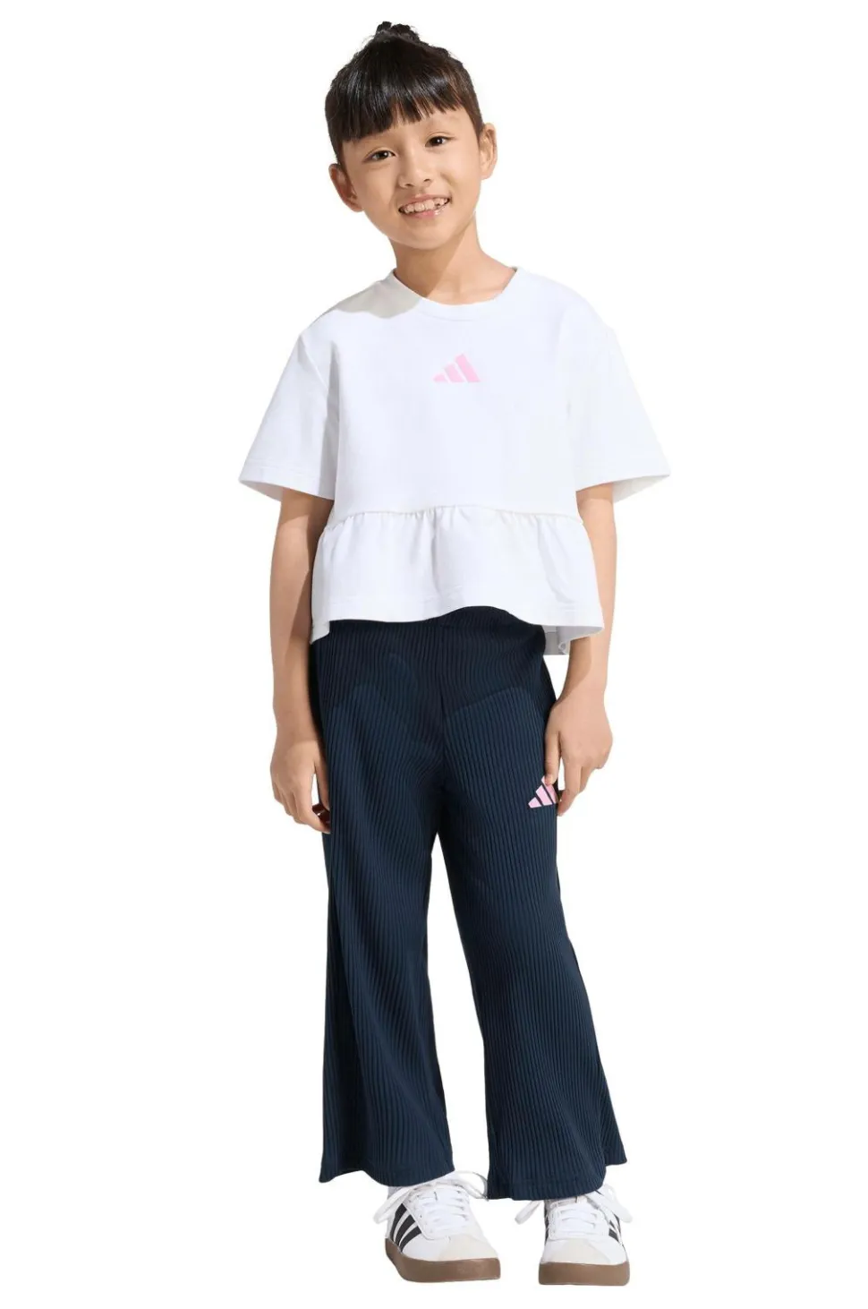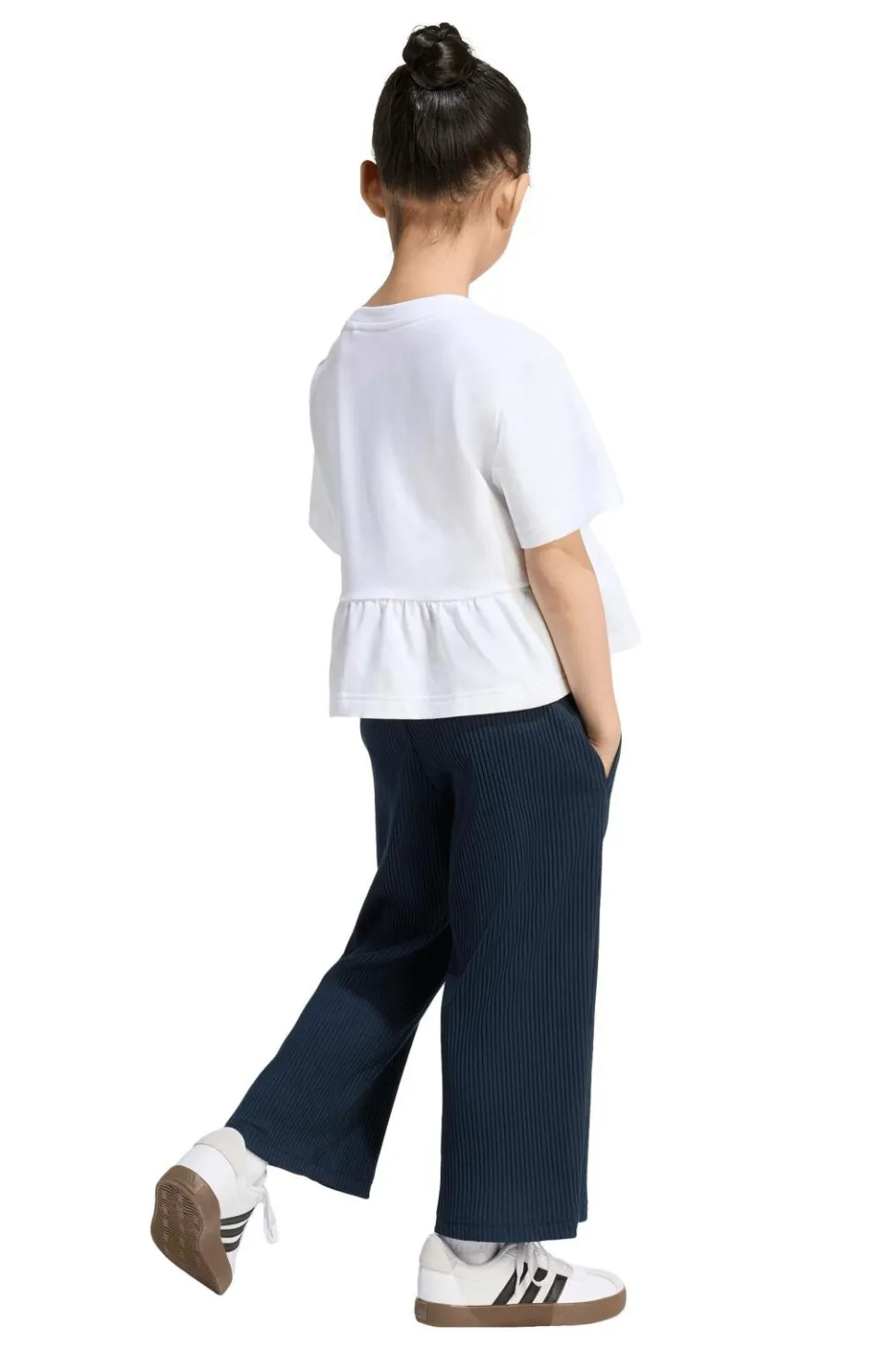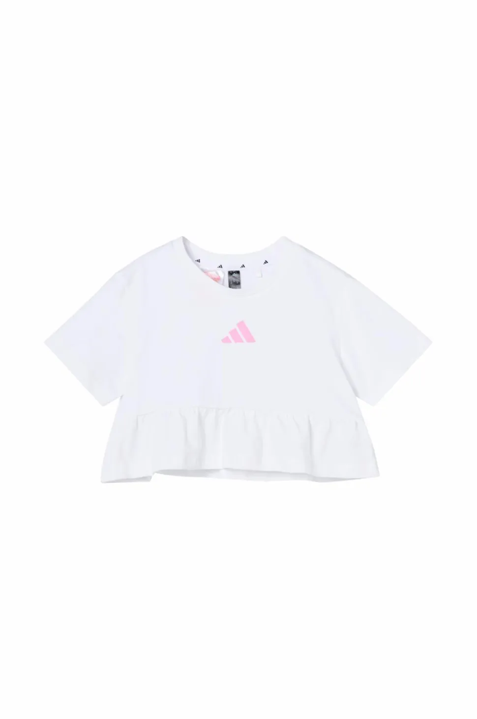 • Top med rund halsudskæring, korte ærmer og volant nederst
