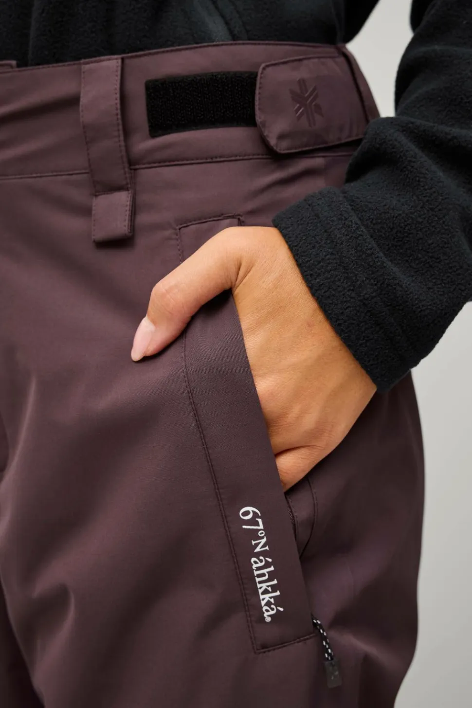 Vind- og vandtæt yderstof med tapede sømme. Justerbar talje med løkker. Lukning med to trykknapper og velcro. Gylp med lynlås. Silikonebånd på indersiden af linningen forhindrer, at bukserne glider, og holder dem på plads. Forbøjede knæ. Lange lynlåse ved benafslutningerne gør det nemt at tage bukserne af og på. Benmanchetter med forstærket stof og justerbar bredde med trykknapper. To lommer foran med lynlås. Benlængde ca. 81 cm i størrelse 36.