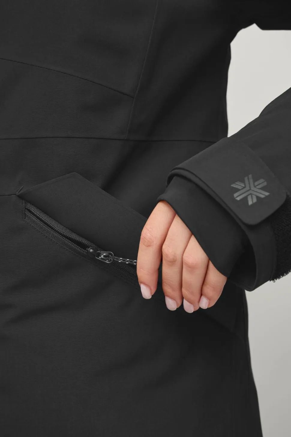 • Liftkortslomme på den venstre arm med lynlås