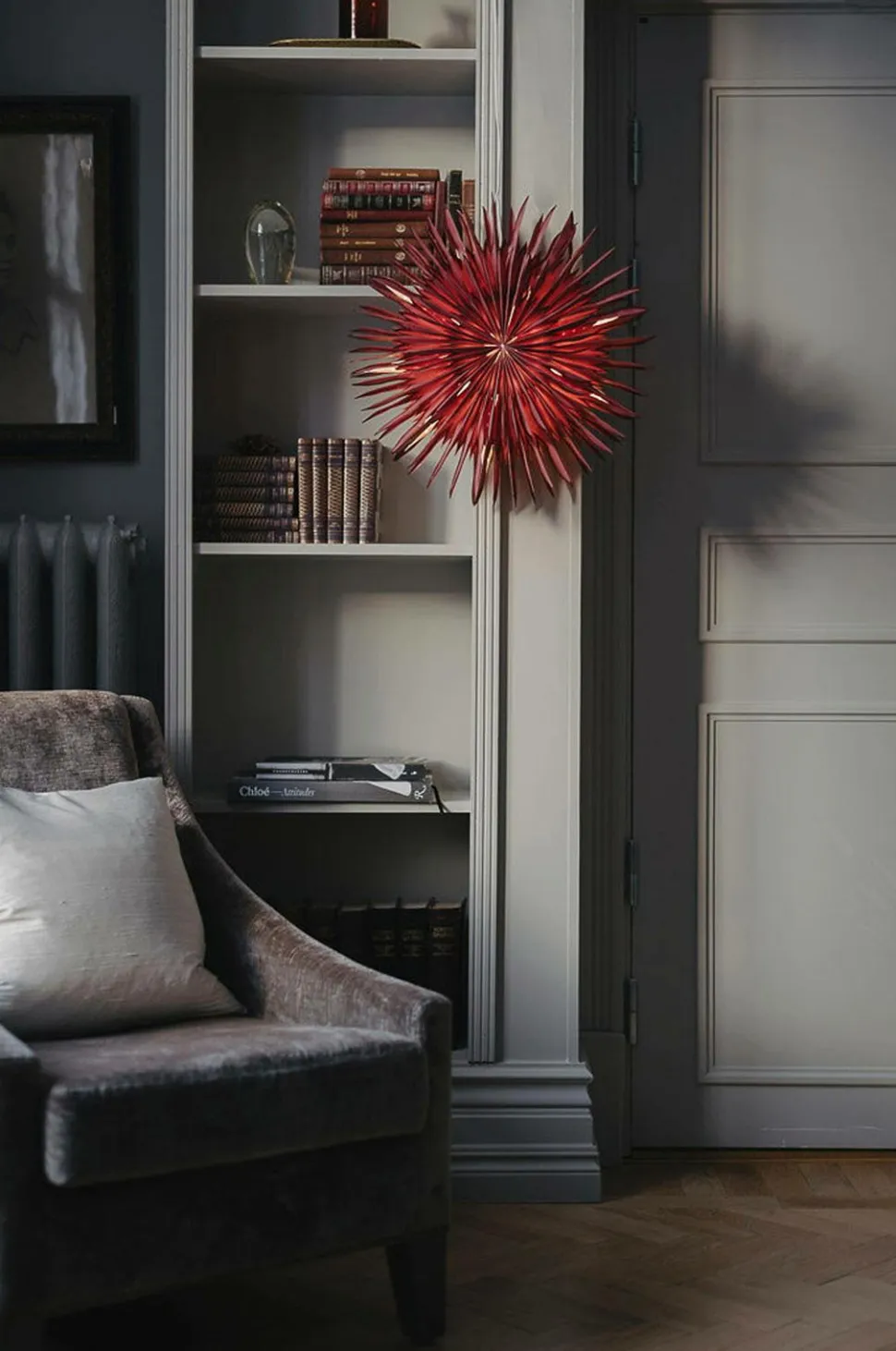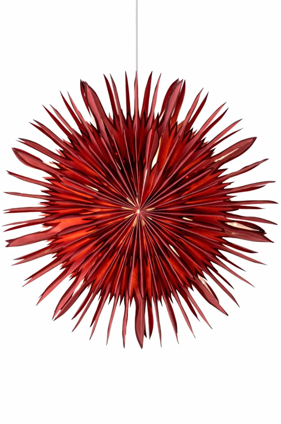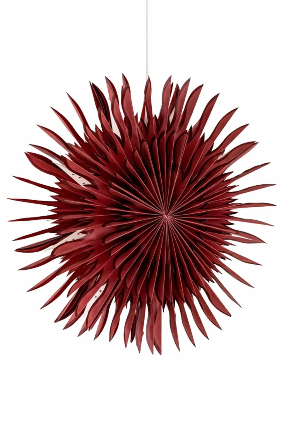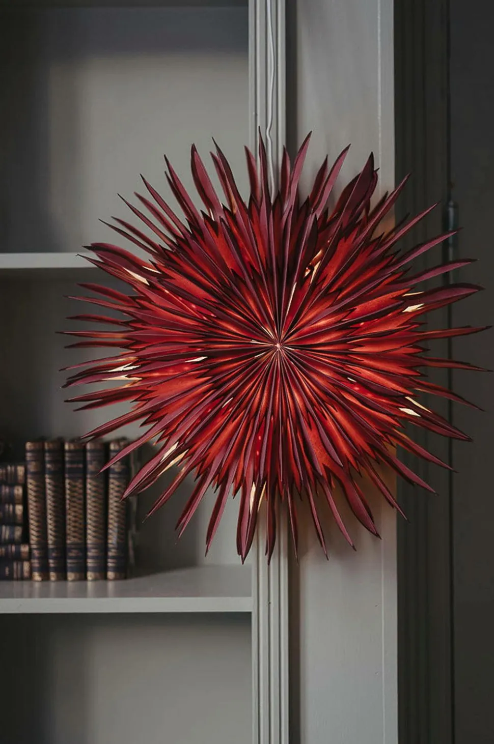Desiré er en elegant mørkerød stjerne. Hver papirfold er trykt med en mørkere rød farve i konturerne for at give en ekstra flot dybde, når den tændes. Må kun bruges med led-lampe. Ledningssæt / loftophæng og lyskilde medfølger ikke.