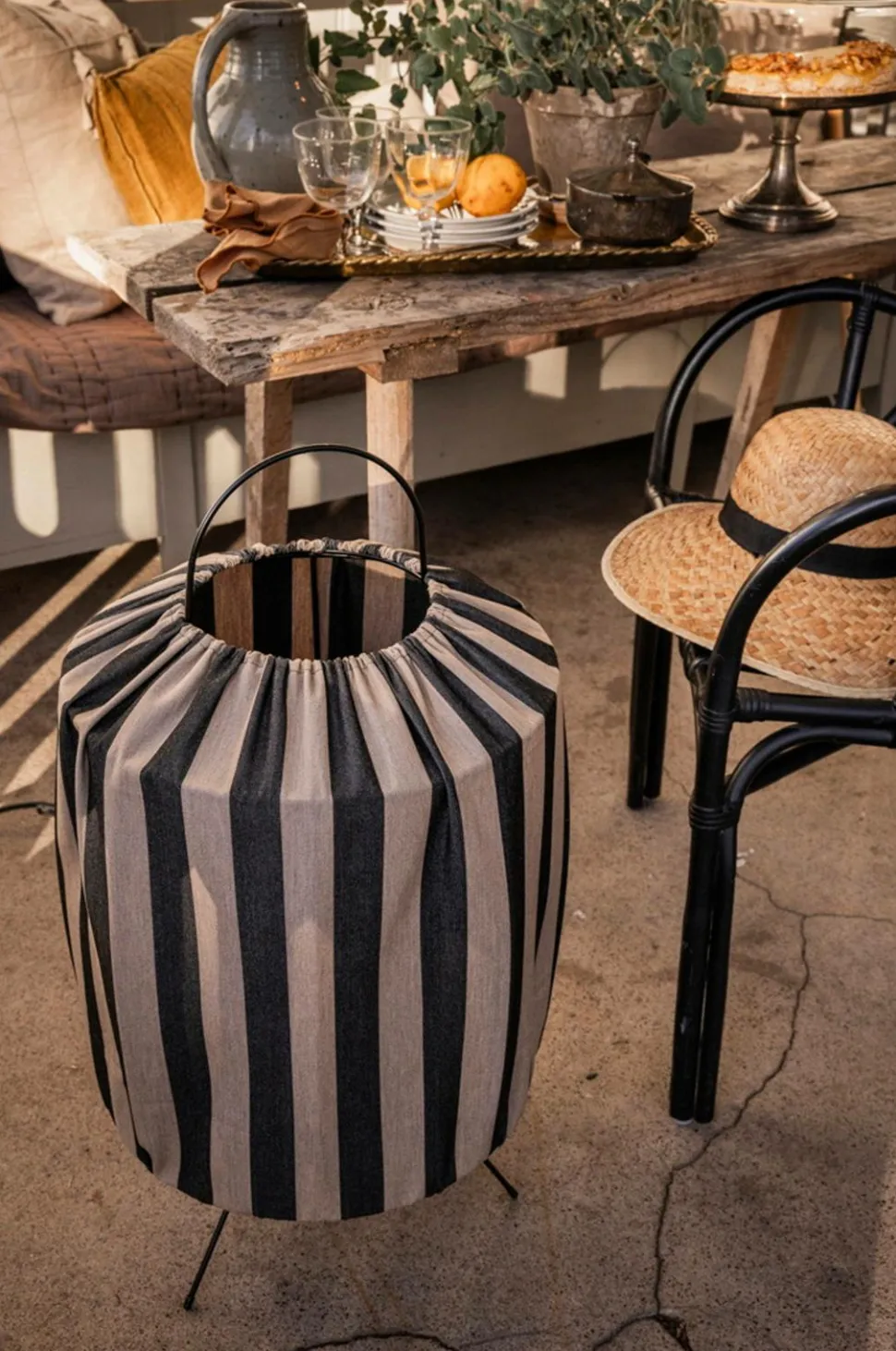 På dejlige sommeraftener spreder Capri et behageligt lys og skaber en hyggelig atmosfære på altanen og terrassen. Lampen er fremstillet af vejrbestandige materialer, hvor stoffet er smuds- og vandafvisende, UV-bestandigt og har høj farveægthed, hvilket betyder, at den tåler stærkt sollys og ikke falmer af at stå udendørs. Det 2,5 m lange gummikabel gør placeringen nem og fleksibel. Capri-serien fås i tre varianter og tre forskellige farvekombinationer.