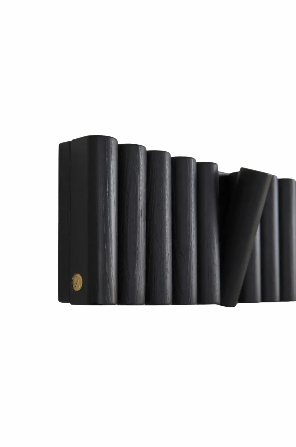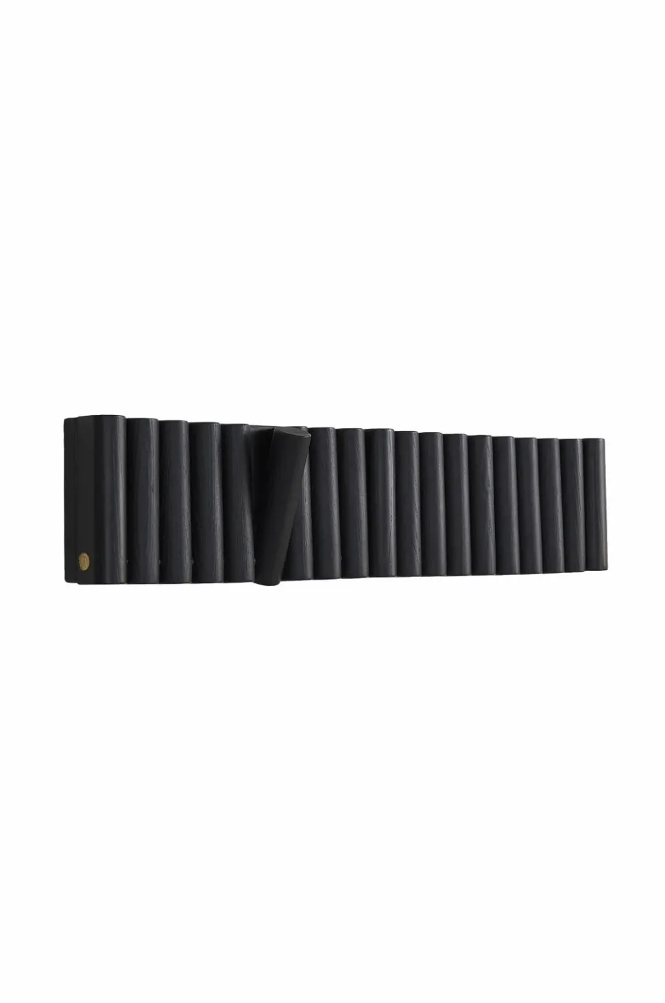 Mono Coat Rack fra Andersen Furniture er en smuk og enkel knagerække i sortmalet ask og er designet med et enkelt og monotont look. Coat Rack har flere kroge i én knagerække, hvor overtøj og bøjler hænges på krogen ved at vippe en af knagerækkens knager ned. Den er designet af den danske designerduo Says Who, som har fokuseret på at skabe en knagerække med et elegant udtryk. Mono Coat Rack er inspireret af trenden med “small living”, hvor alle hjemmets kvadratmeter udnyttes med et udvalg af funktionelle møbler og boliginteriør. Den kan bruges i de fleste rum, men er særligt velegnet i entréen, soveværelset eller køkkenet. Knagerækken er nem at hænge op med skjulte nøglehulsbeslag på bagsiden. Et elegant og diskret Andersen-logo i messing er monteret på siden.