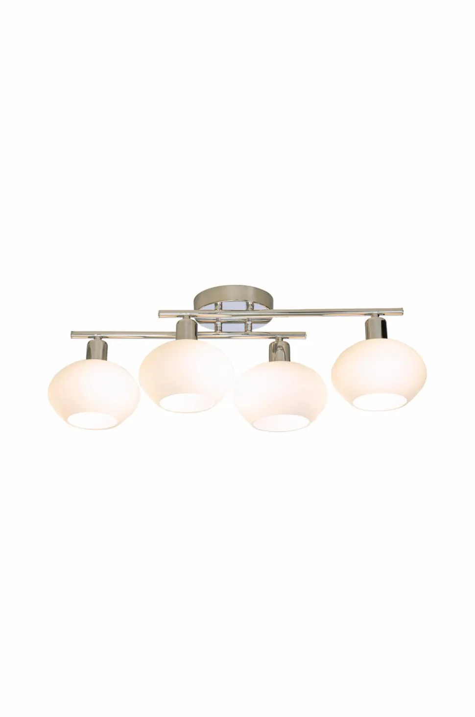 Elba plafond er den perfekte badeværelseslampe til dem, der ønsker et moderne touch på deres badeværelse. Denne lampe er lavet af forkromet metal og har et elegant design med fire opalhvide glaskupler, der skaber et blødt og behageligt lys. Med sit enkle og stilrene design passer Elba ind i de fleste badeværelser.