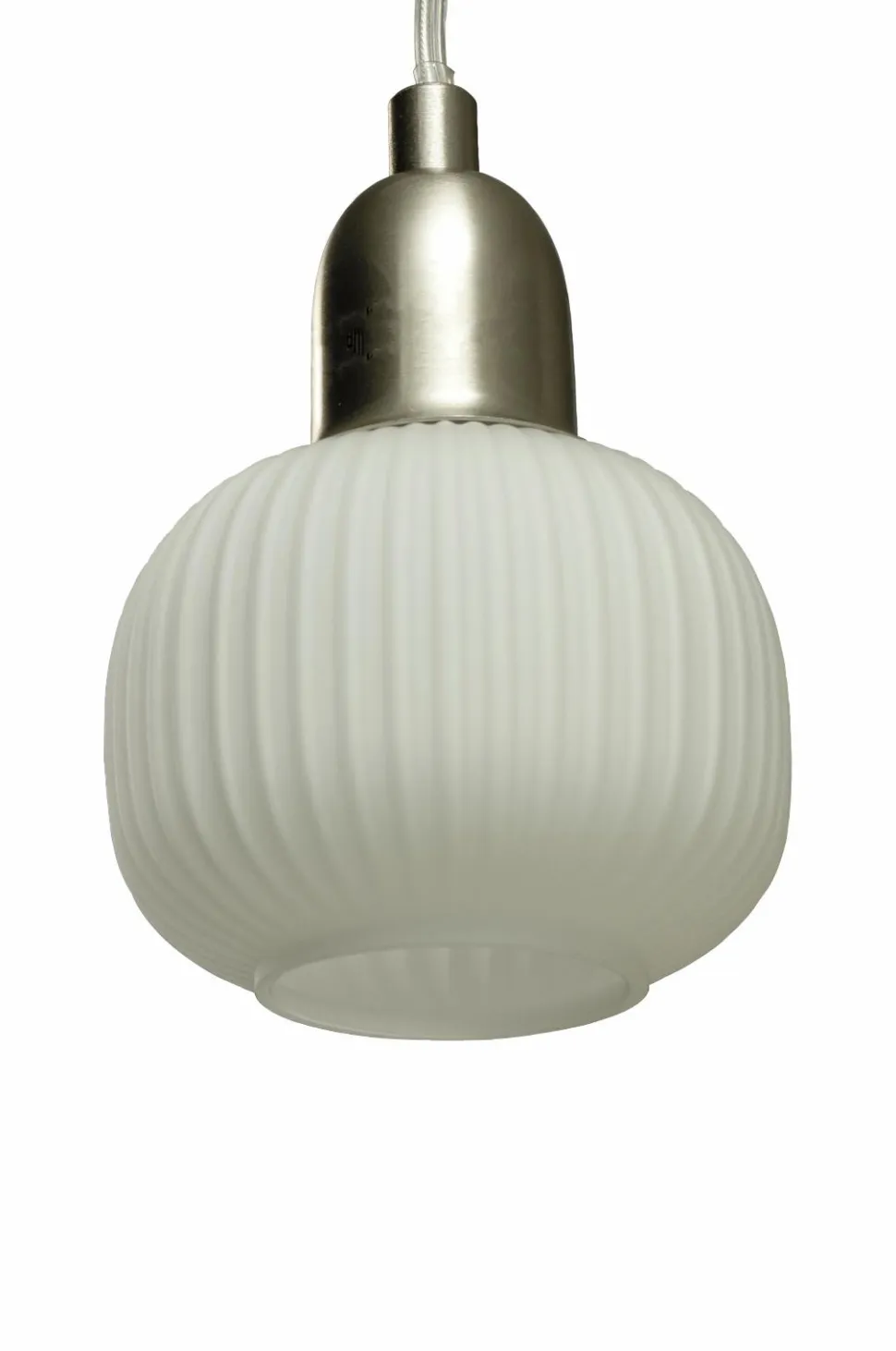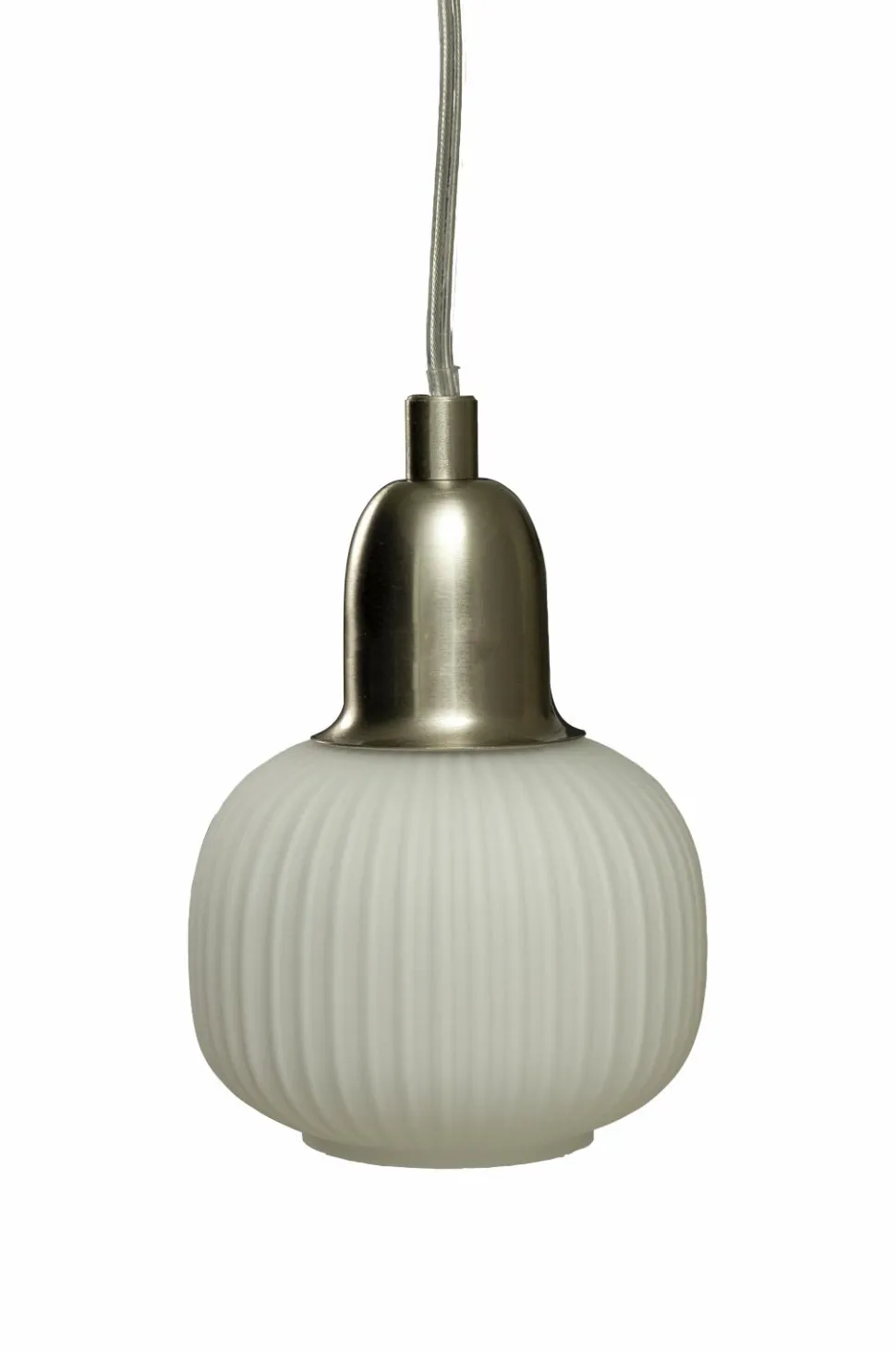 ELIN pendel med riflet glaskuppel er en lille og fin pendel, der kun er 10 cm i diameter, så den passer også i et lille vindue, eller i en smal vinduesniche. Eller hvorfor ikke to i et lidt større vindue? Lampen er monteret med 4 meter kabel og strømtilslutning med stik, som gør det nemt at hænge lampen på en krog i vinduet.