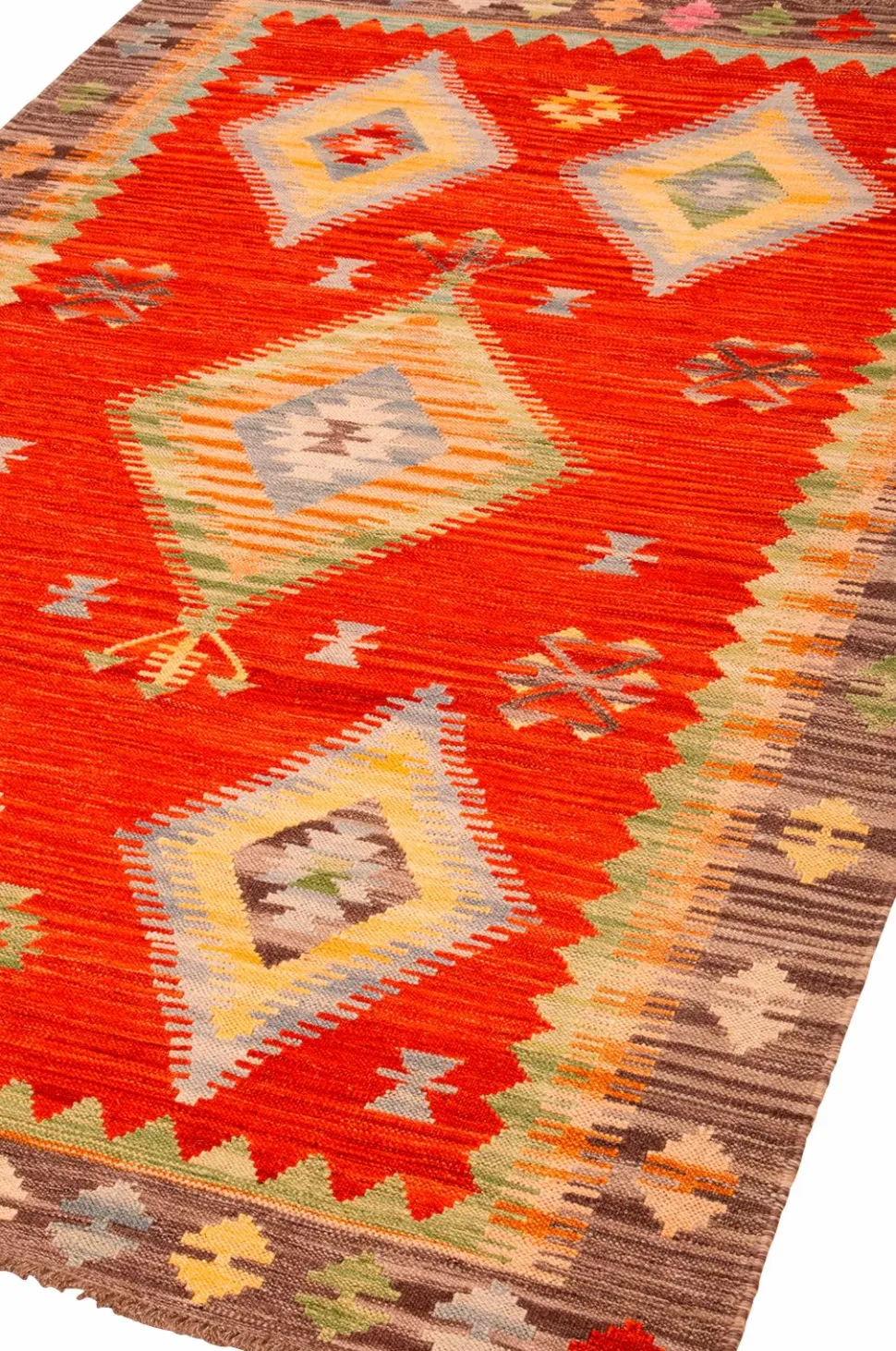 Et klassisk vævet tæppe med et heldækkende geometrisk mønster. Det vegetabilsk farvede garn garanterer en smuk og harmonisk farveskala, og fordi det er vævet i 100 % uld, er det både varmt og smudsafvisende. Et tæppe, der er nemt at placere, og som passer lige så godt foran den knitrende ild i din yndlingslænestol som i køkkenet. Alle vores kelim multi er vendbare, så du kan bruge begge sider af tæppet.