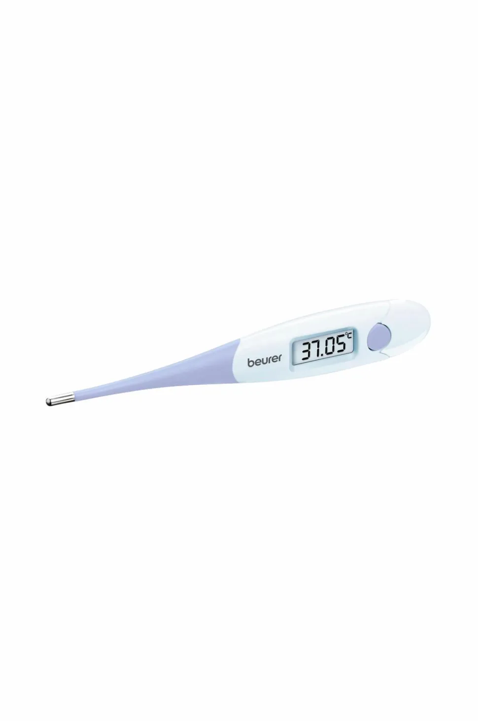 Termometer med digital visning som viser to decimaler. Kan bruges både til feber mellem 35,00 og 42,00 °C og rumtemperaturer 18,00 og 28,00 °C