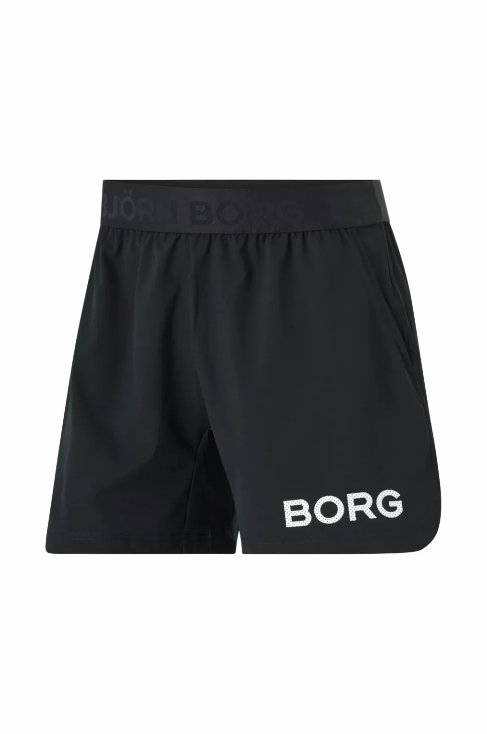 • Shorts i blød, let polyester med logoprint på det ene ben