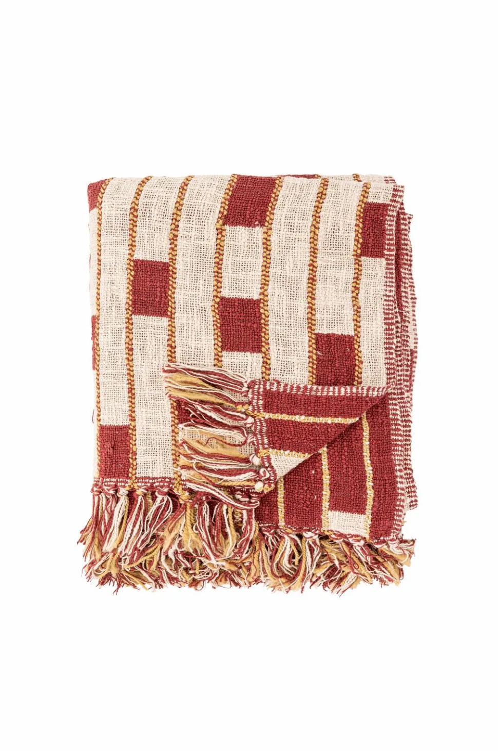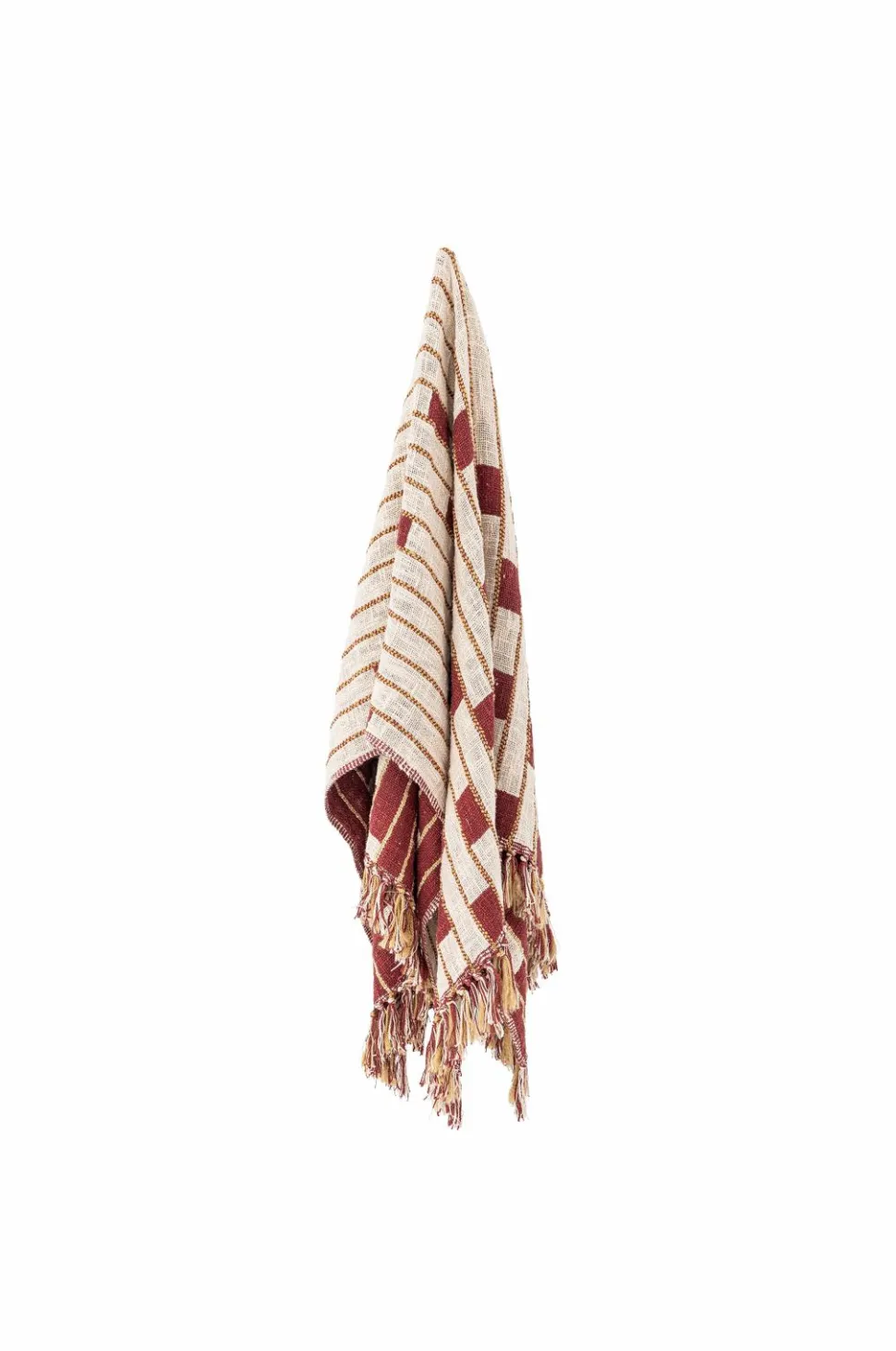 Cang plaiden fra bloomingville er vævet i bomuld med brede striber. De dekorative frynser langs kanterne giver et afslappet og hyggeligt look. Perfekt til at skabe varme og komfort i stuen eller på terrassen.