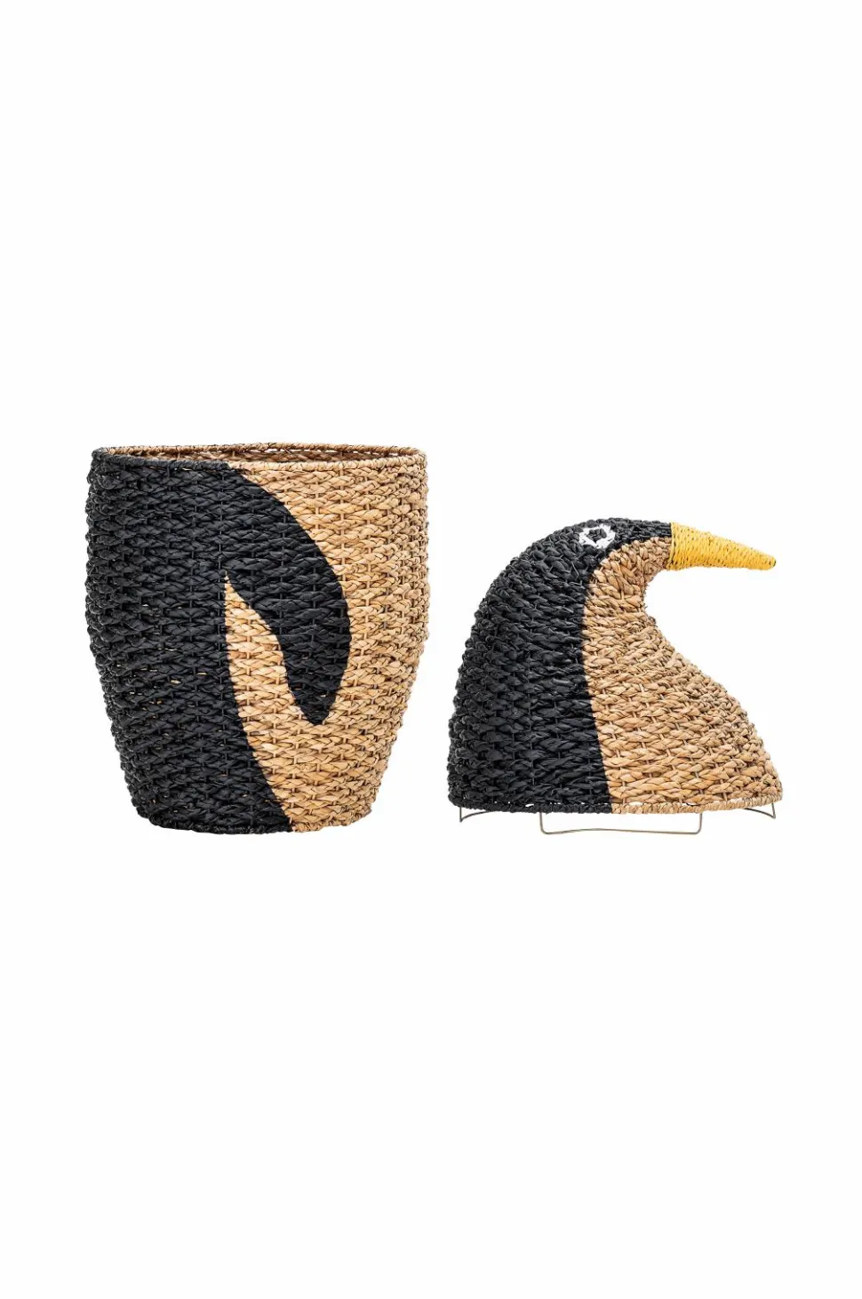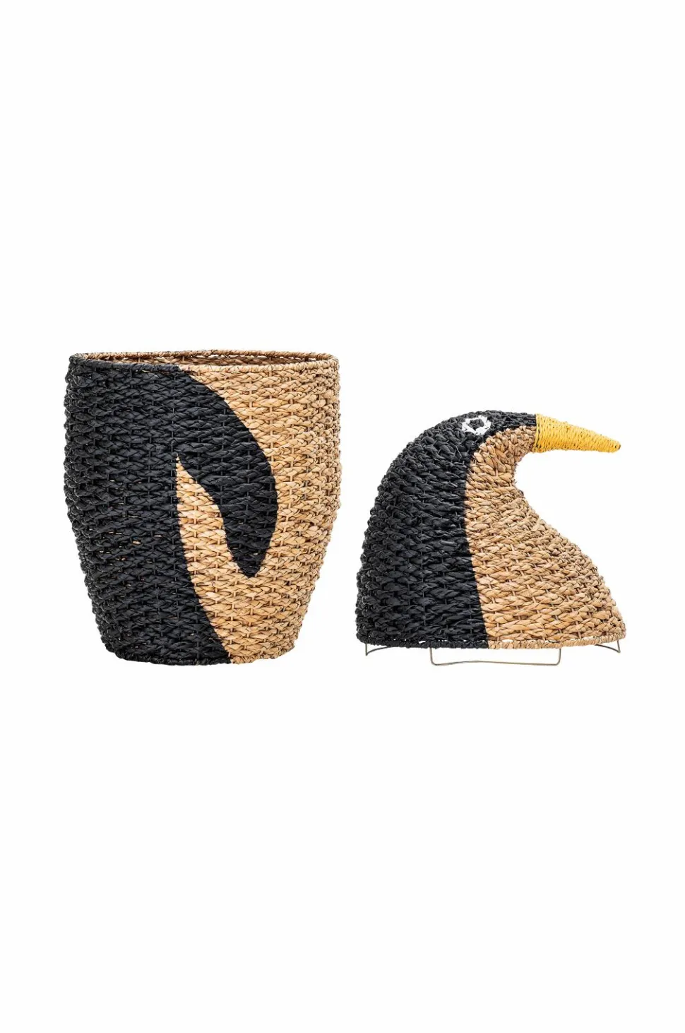 Bloomingville Mini. Opbevaringskurv med låg af naturgræs formet som en pingvin. Mål: Diameter 37, højde 69 cm.