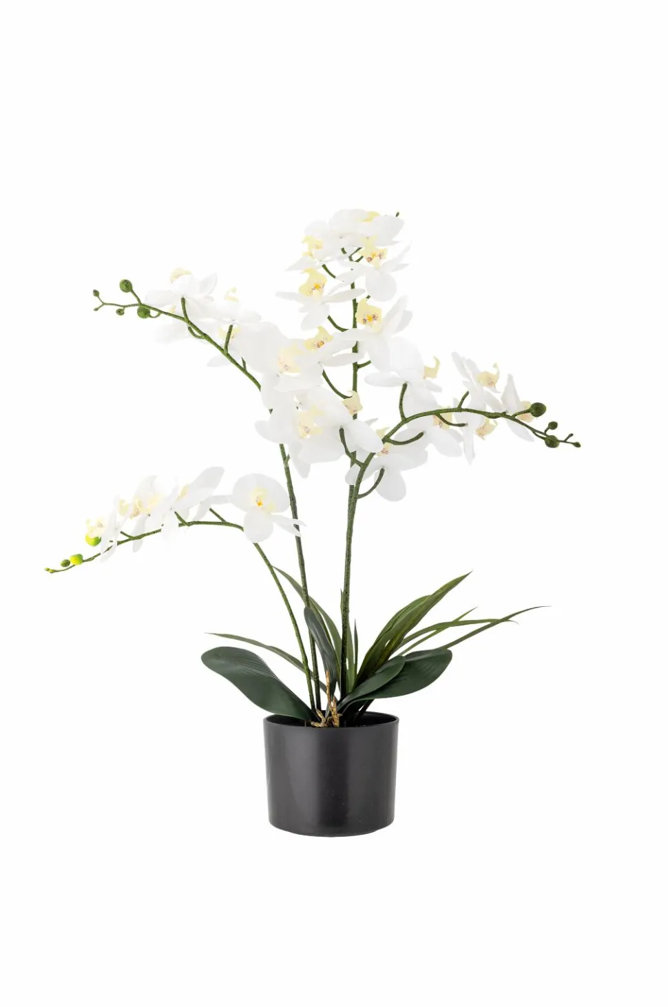 Den kunstige plante orchid fra bloomingville er indbegrebet af tidløs skønhed. Dens hvide, yndefulde blomster strækker sig opad og skaber et look, der er både klassisk og moderne på samme tid. orchid er vedligeholdelsesfri, så du kan nyde dens blomstrende charme uden at skulle bekymre dig om vanding eller pleje. Den leveres med en enkel potte og er klar til at blive placeret i en krukke, der passer til både planten og din indretning. Form stænglerne/grenene før brug for at fremhæve plantens naturlige udseende og tilpasse den til din personlige indretning. Dimension: d16xh84 cm