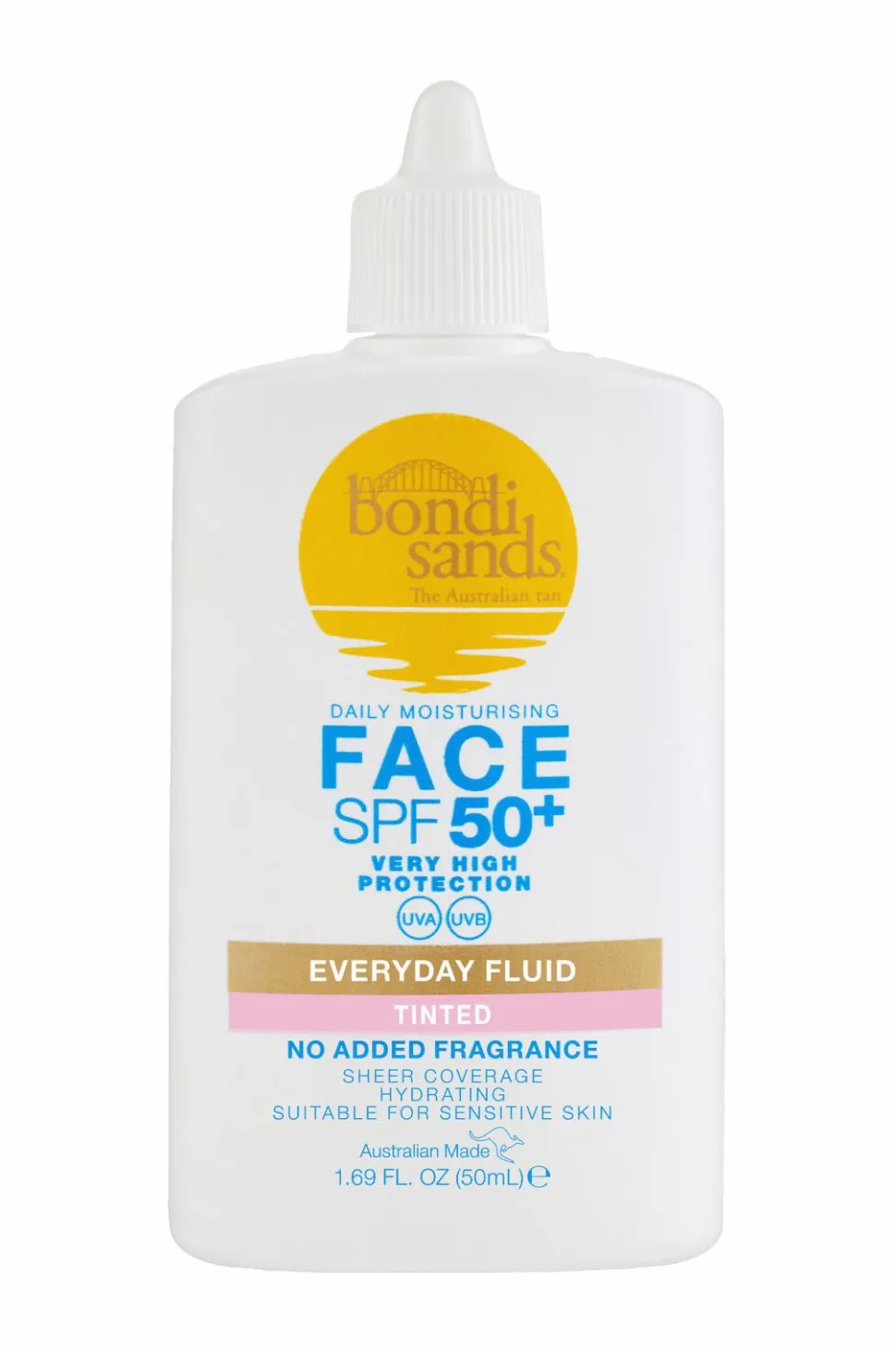 Nyd en solbeskinnet dag på Bondi Sands-måden med vores parfumefri Spf 50+ Tinted Face Fluid. Den giver Uva og Uvb beskyttelse, og vores let dækkende formel er ultralet, skånsom og hurtigt absorberende. Kan bruges alene eller under makeup. Dermatologisk testet. Velegnet til følsom hud. Ikke komedogen – tilstopper ikke porerne.