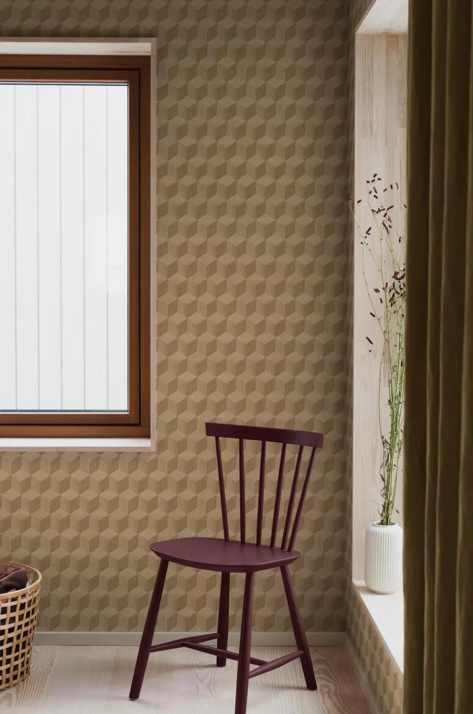 Oplev den tredimensionelle tiltrækningskraft ved vores cube tapet i kontrastfarver. Det har et lille og harmonisk geometrisk mønster, der giver dine vægge en subtil, men detaljeret dybde og interesse. Hæng cube tapet op i dit soveværelse, gang eller køkken for at få en moderne og stilfuld karakter. hver rulle er 10,05 m. Bredde 53 cm. Mønsterrapport på 13,25 cm, lige match. Fremstillet i Sverige på et ikke-vævet materiale. Tapetet er easyup-marked, hvilket betyder, at du påfører limen direkte på væggen, og at du ikke behøver at lave nogen grundmaling inden.